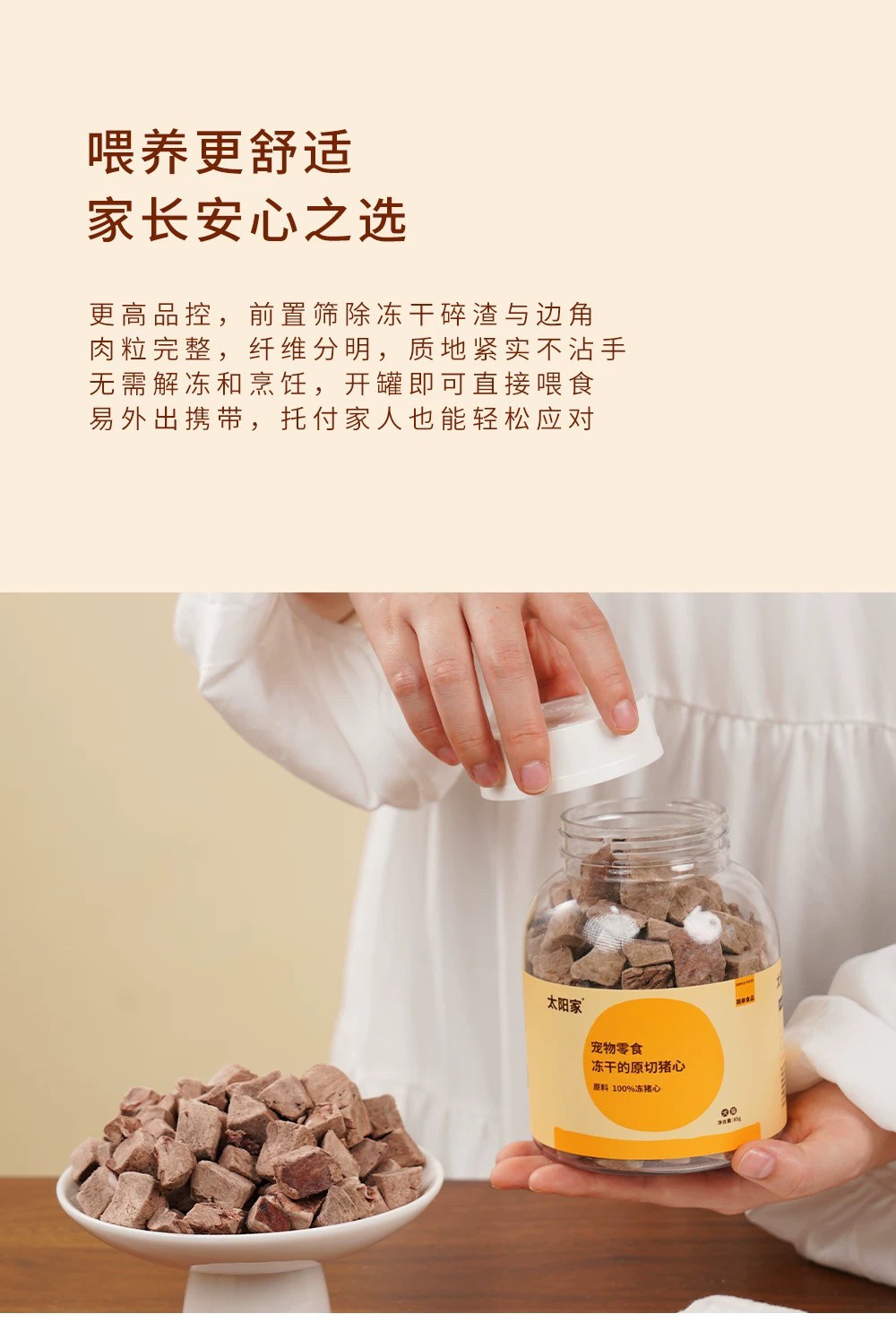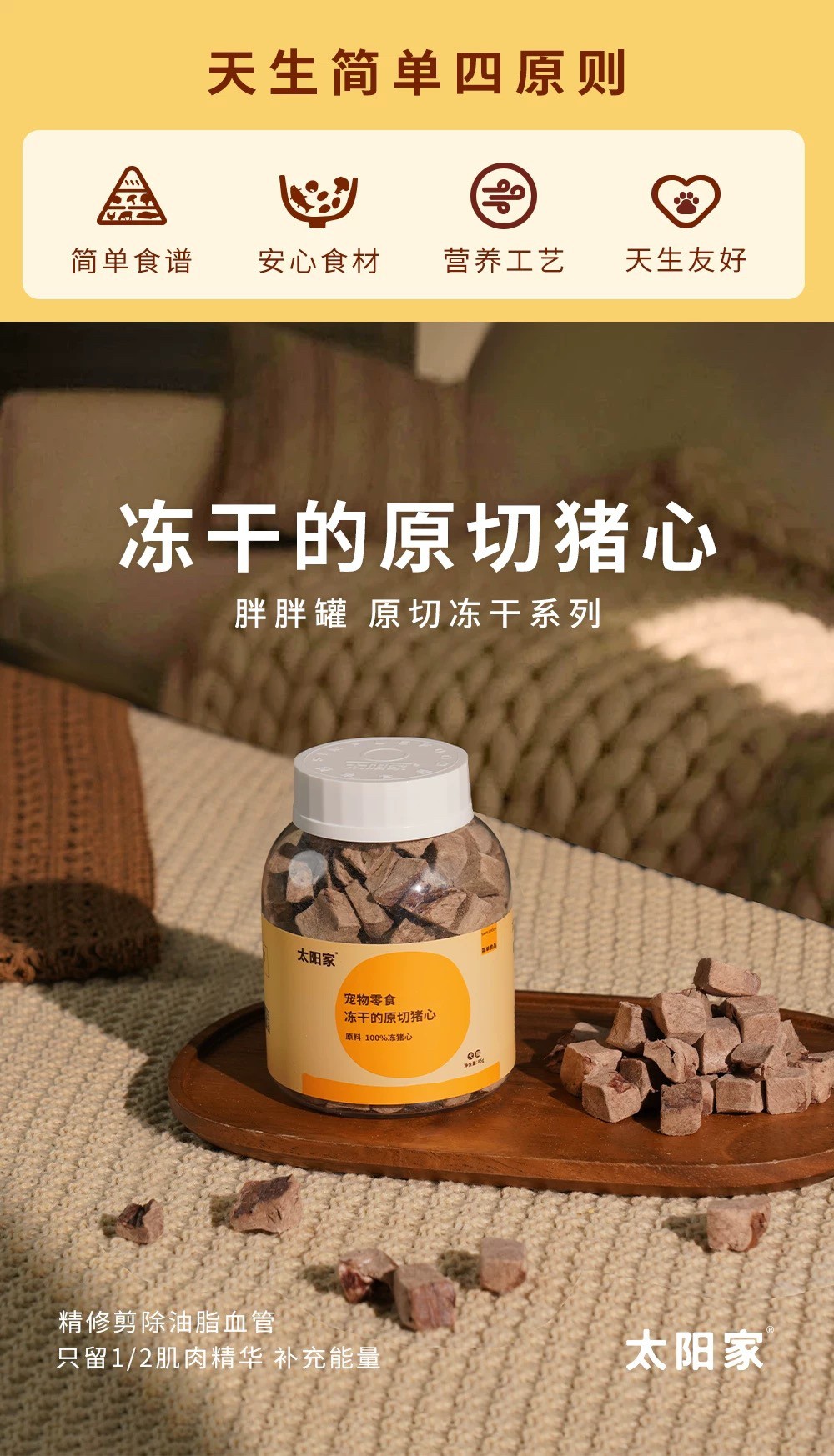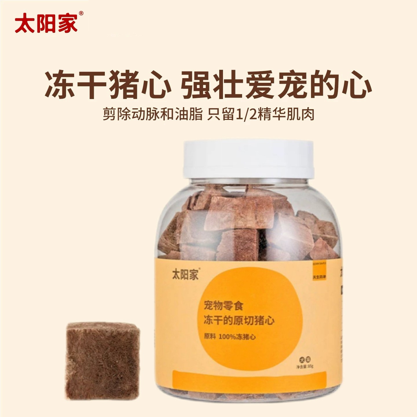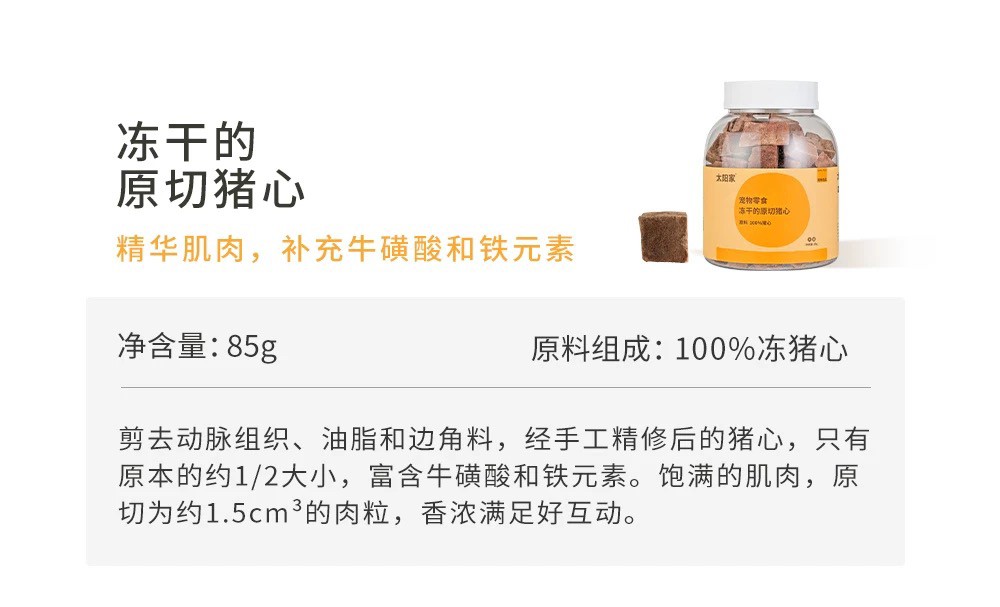 太阳家 胖胖罐 冻干原切猪心 85g 宠物猫狗营养拌饭辅食肉牛磺酸铁元素