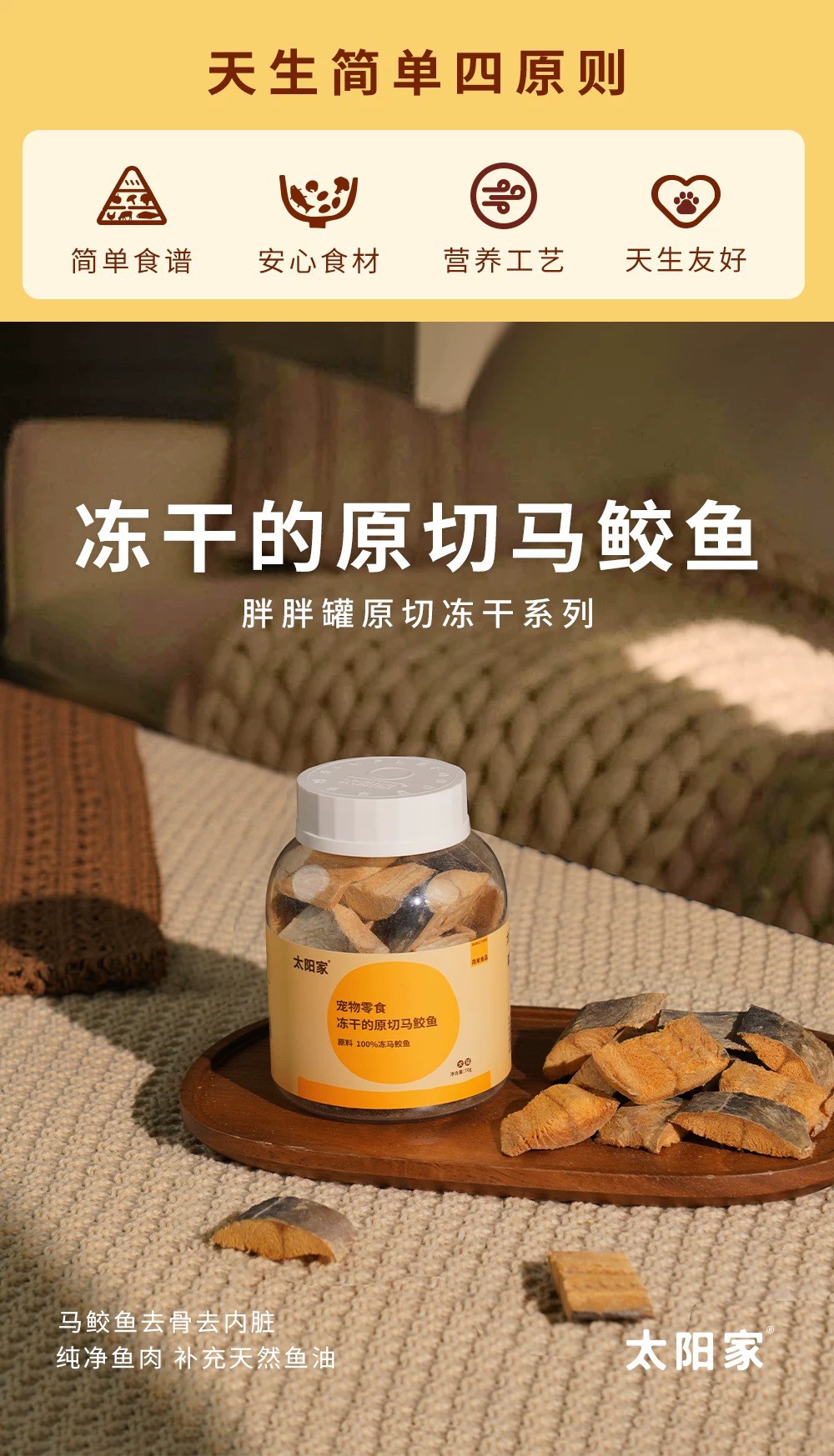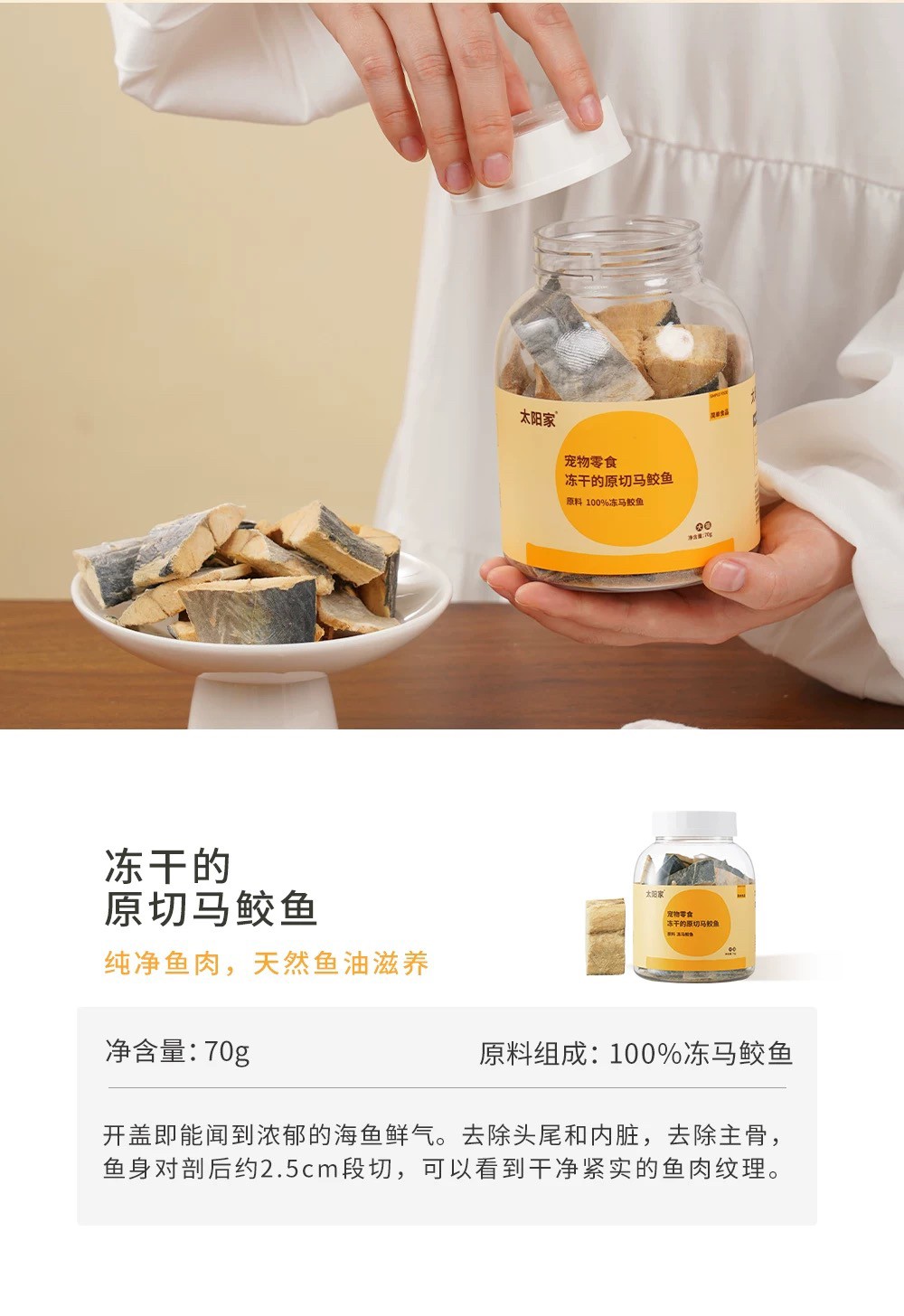 太阳家 胖胖罐 冻干原切马鲛鱼 70g 宠物猫狗营养拌饭辅食肉美毛Omega3鱼油