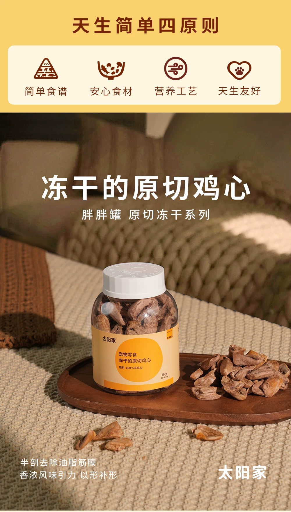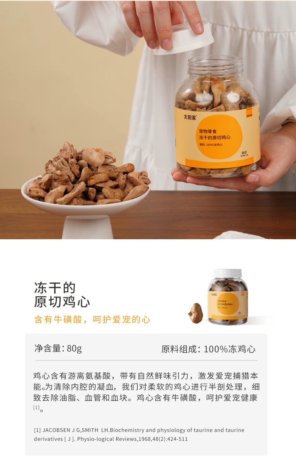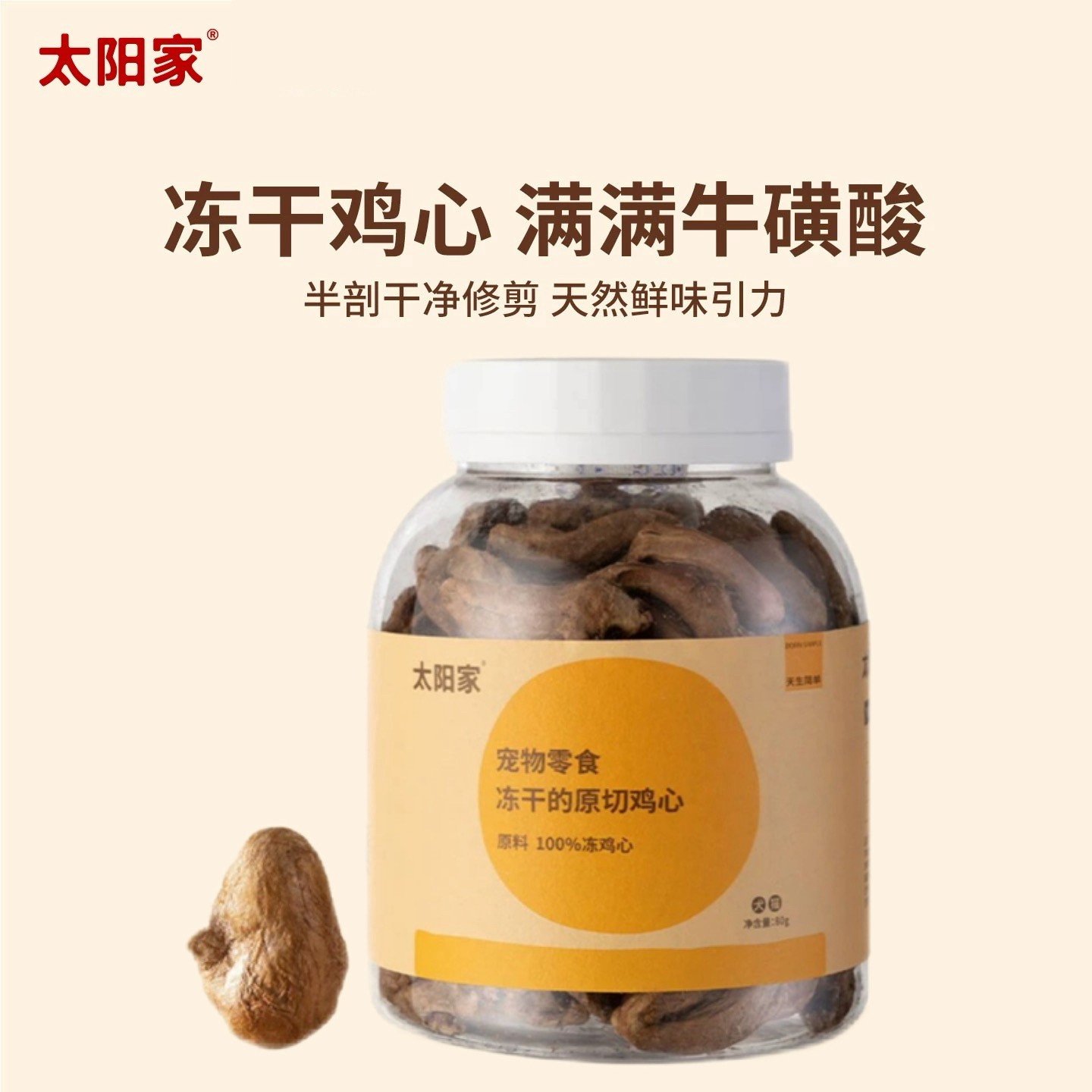太阳家 胖胖罐 冻干原切鸡心 80g 宠物猫狗营养拌饭辅食肉牛磺酸氨基酸