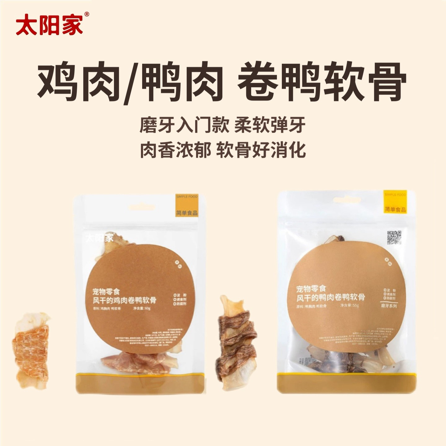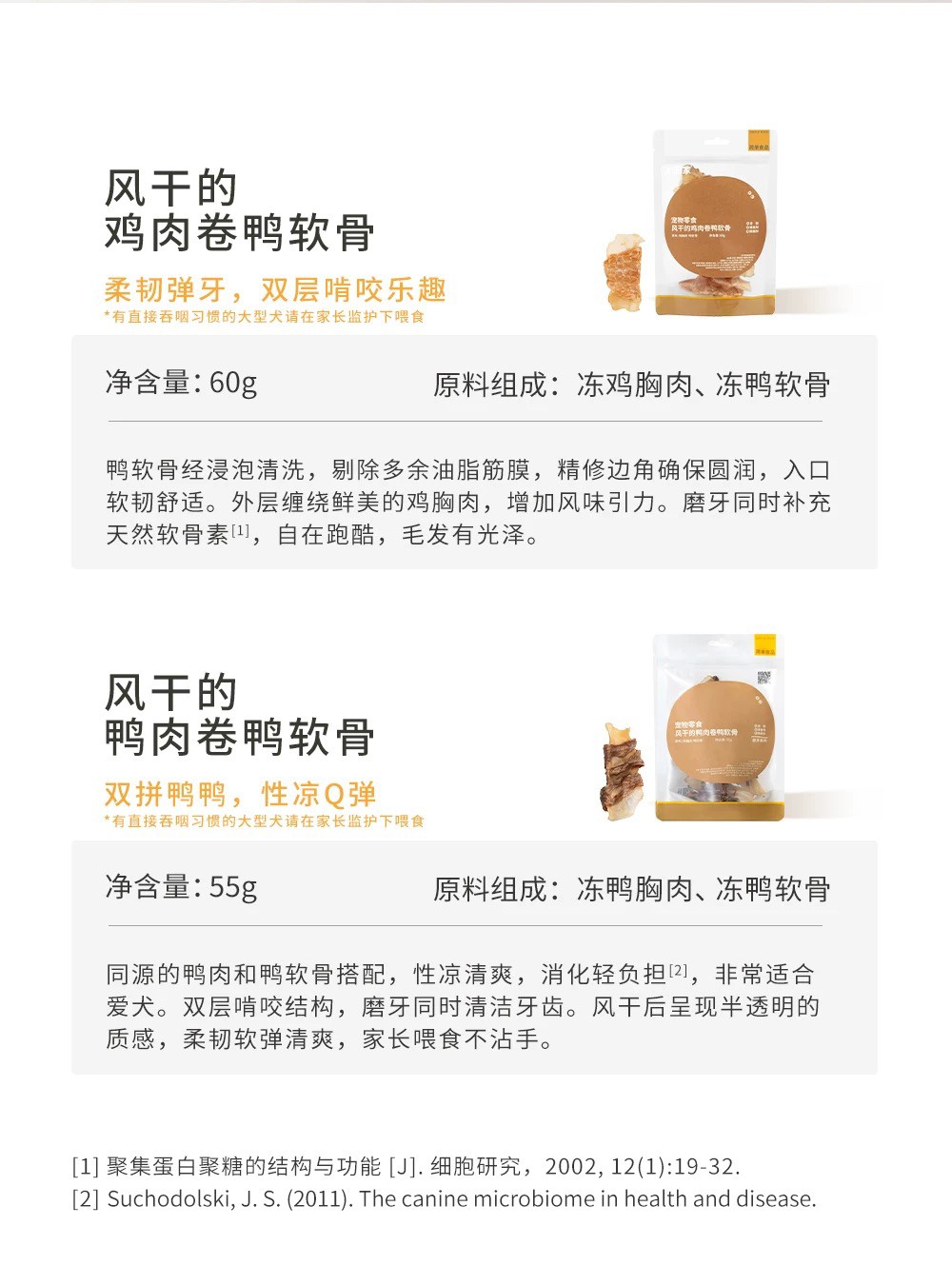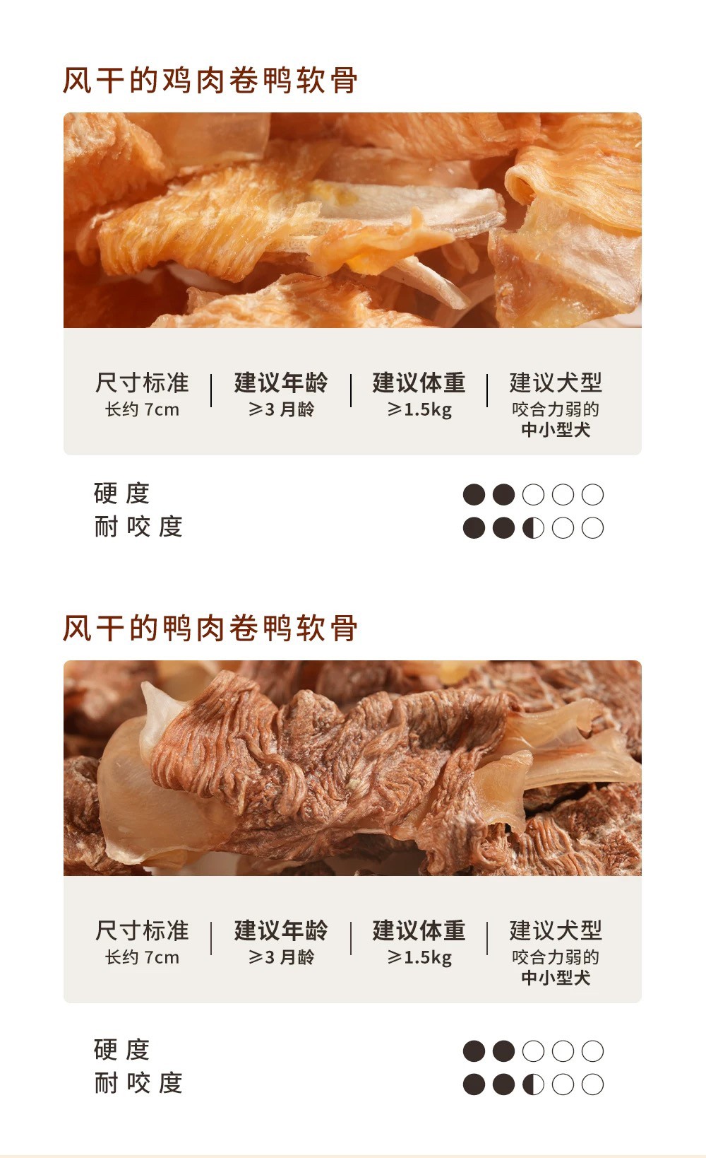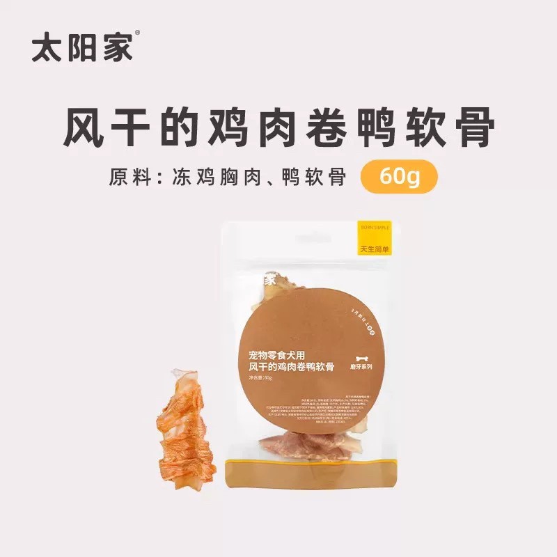 太阳家 鸡肉鸭肉卷鸭软骨 狗用风干磨牙棒零食洁齿训练奖励