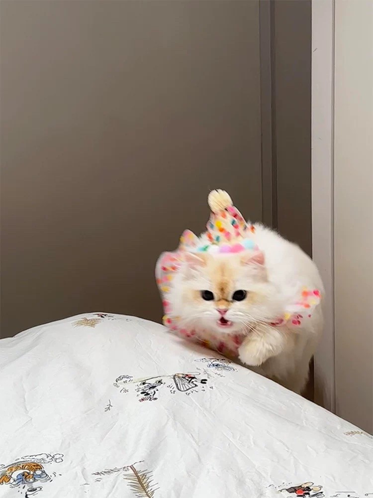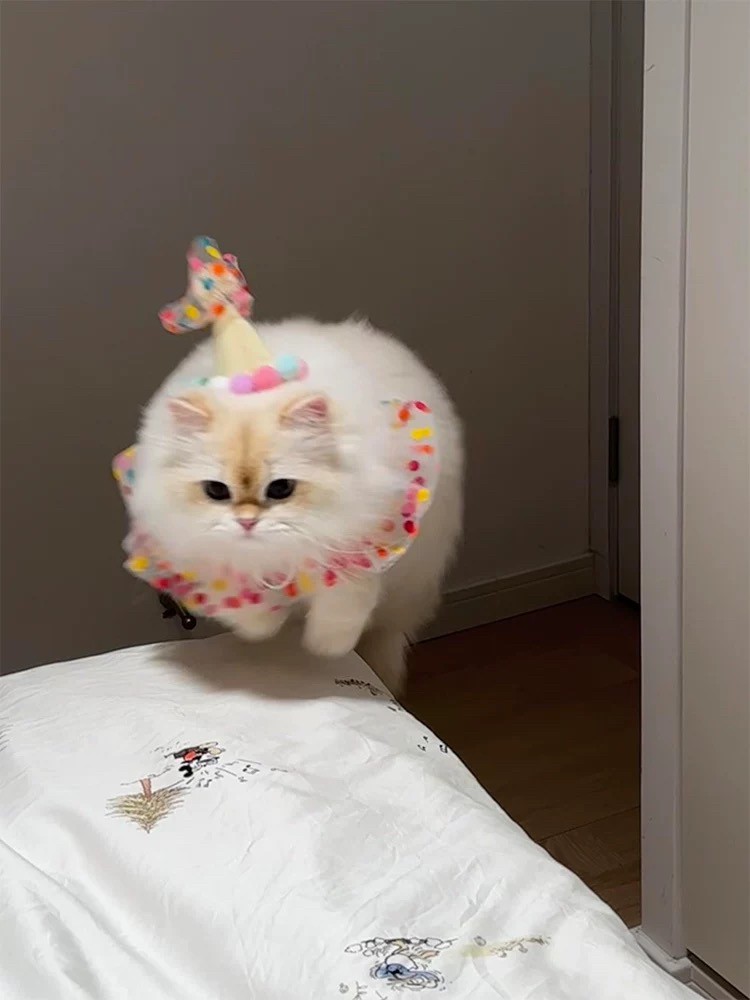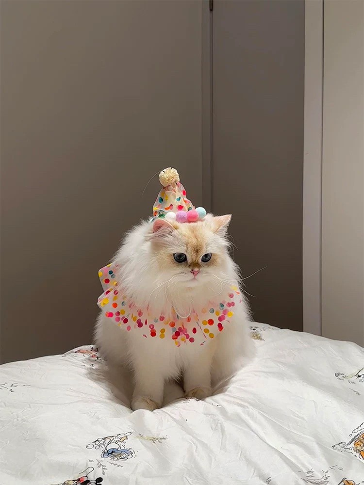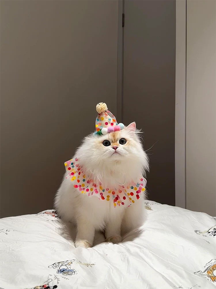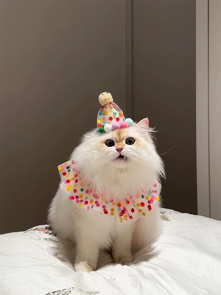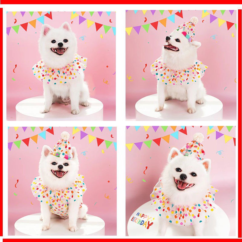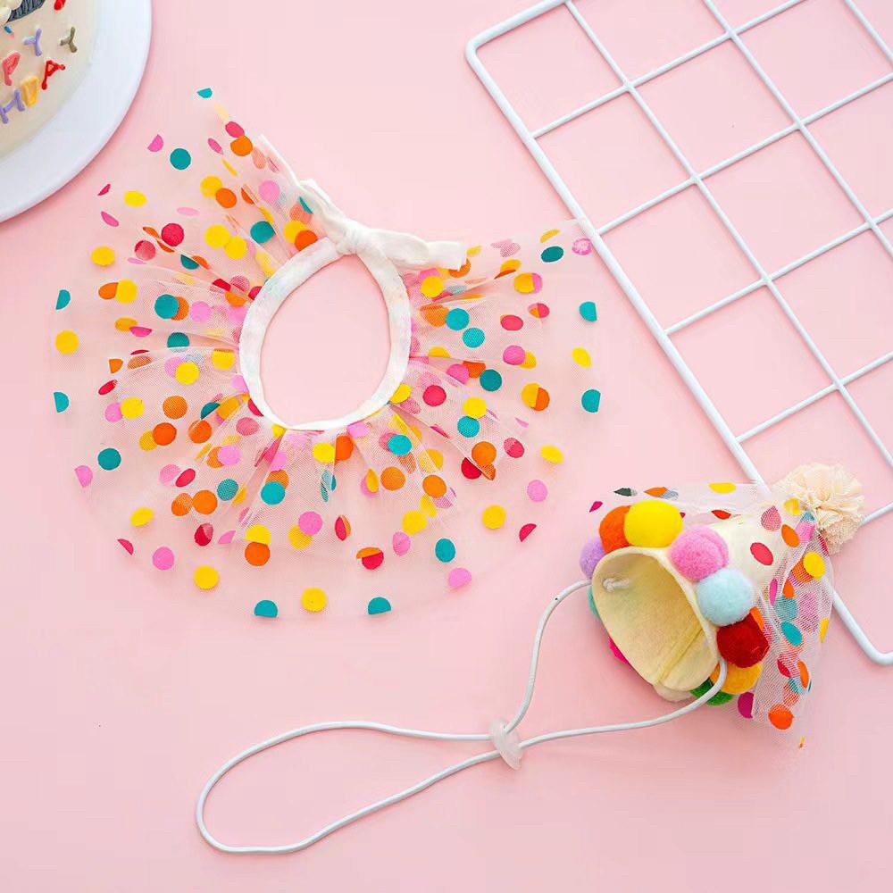 宠物生日装扮 彩色波点泡泡纱帽子围兜套装