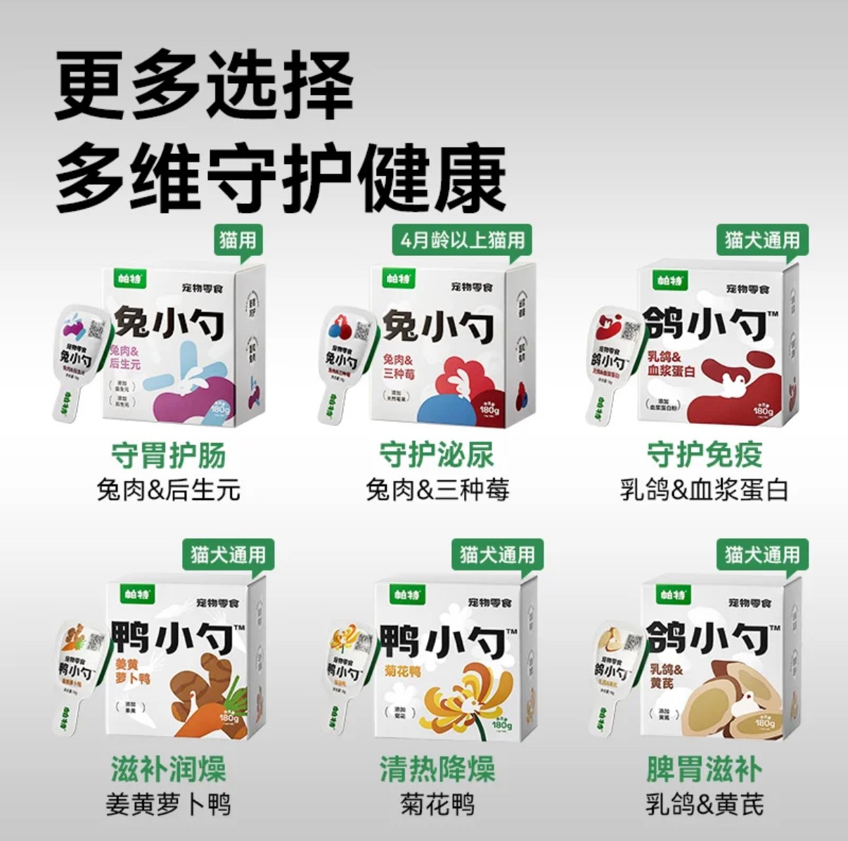 帕特 小勺系列 功能性健康零食 大麦草化毛鸽肉鸭肉鹌鹑蛋黄猫湿粮零食