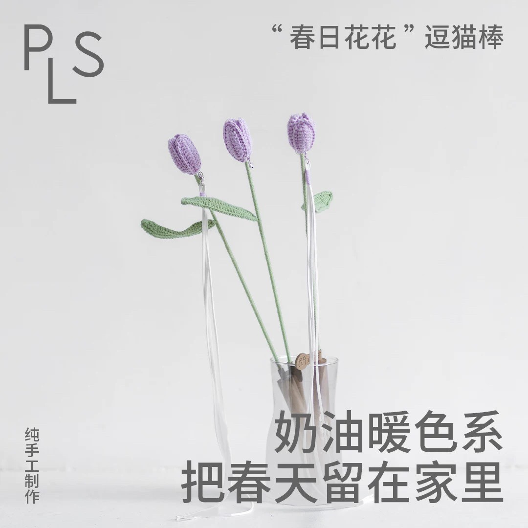 紫色郁金香逗猫棒 春日花花系列 手工编织花型流苏高质量仙女逗猫棒耐咬猫咪玩具