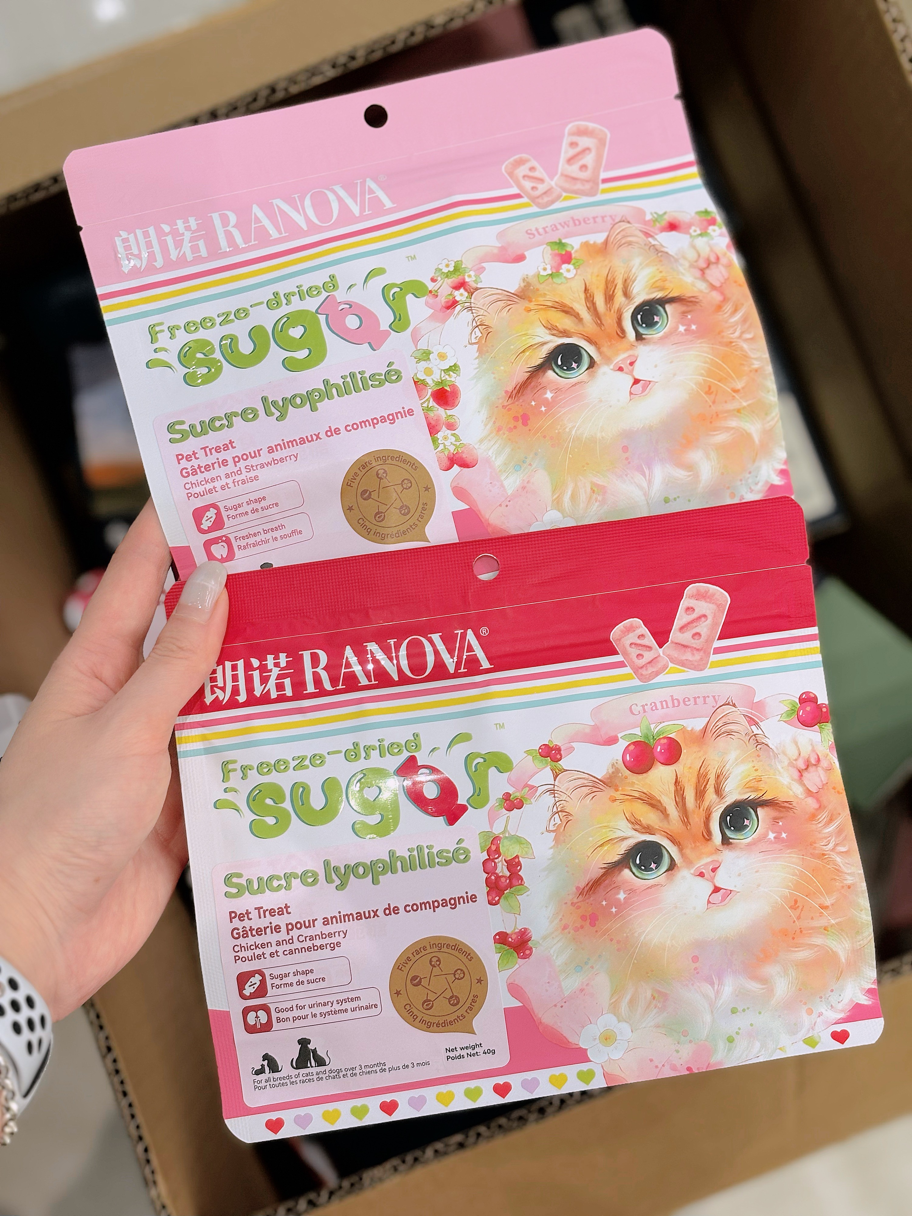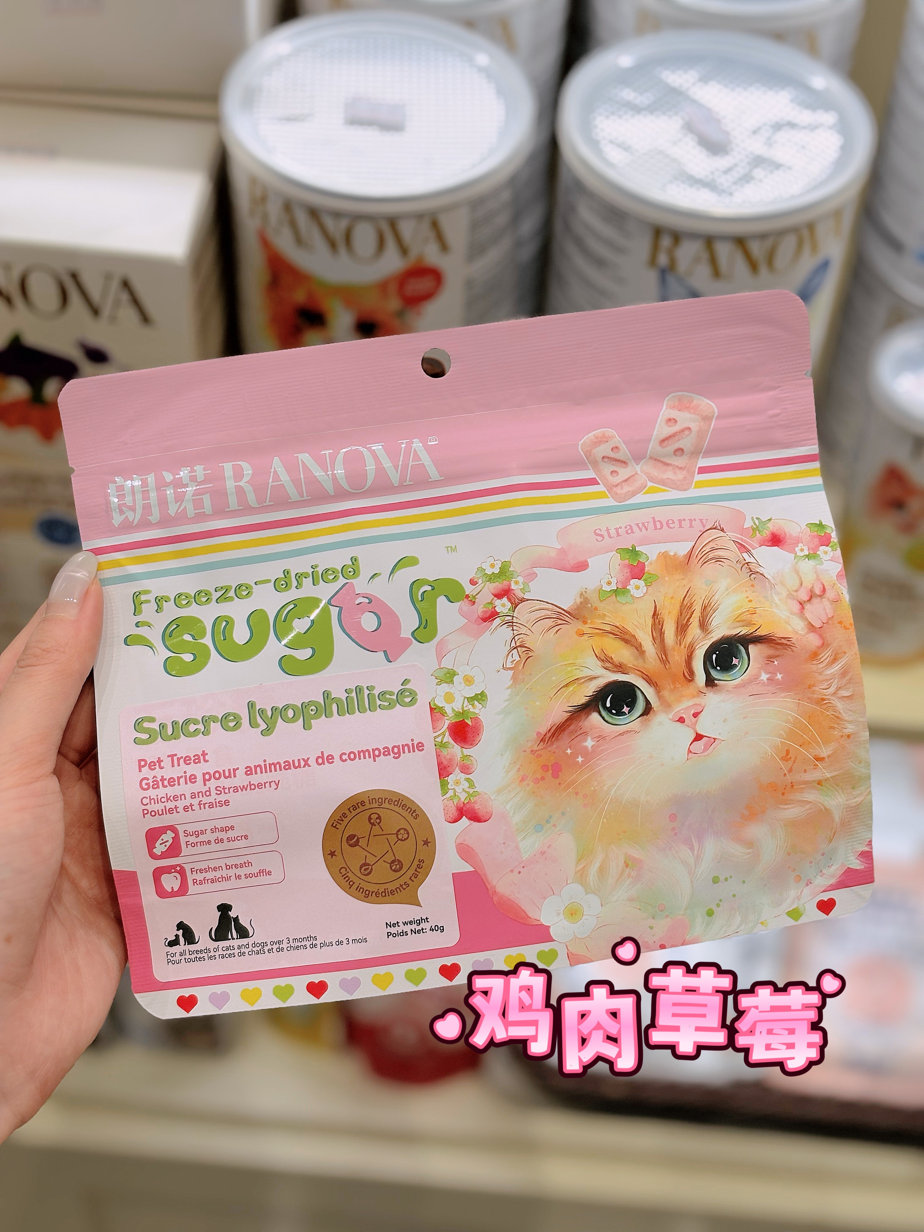 朗诺Ranova 冻干莓好脆脆糖零食 鸡肉蔓越莓草莓 40g 猫狗通用糖果造型