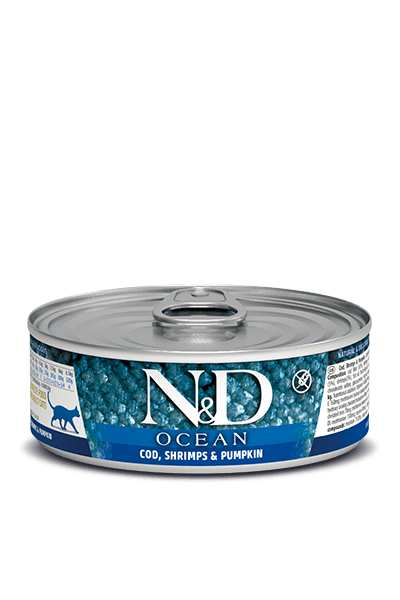 N&D Ocean Cat Cod, Shrimp & Pumpkin Recipe is formulated to meet the nutritional levels established by the AAFCO Cat Food Nutrient Profiles for maintenance. 100% Satisfaction Guaranteed.