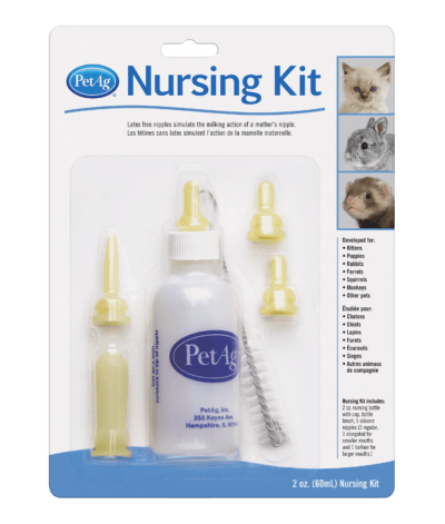 Bottles and nipple specially designed for small and large babies: 2 oz. for small animals. Bottle feeding allows animal to refuse formula when full. Nursing action develops facial muscles and stimulates the normal flow of saliva.