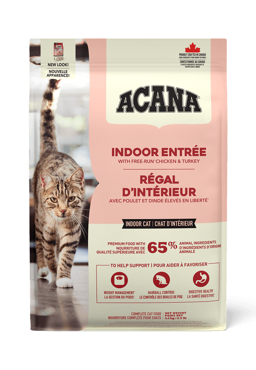 Specially crafted for your indoor cat, our ACANA™ Indoor Entrée Recipe is uniquely suited to the needs of your domesticated feline. Rich with 65% quality animal ingredients1 including free-run2 chicken and turkey, and whole herring, Indoor Entrée has the animal protein your cat needs to be their best. This nutrient-dense recipe also helps support key health benefits for your indoor cat, including weight management, hairball control, and digestive health. Nurture your indoor feline with a recipe tailored to keep them healthy and happy with ACANA Indoor Entrée!