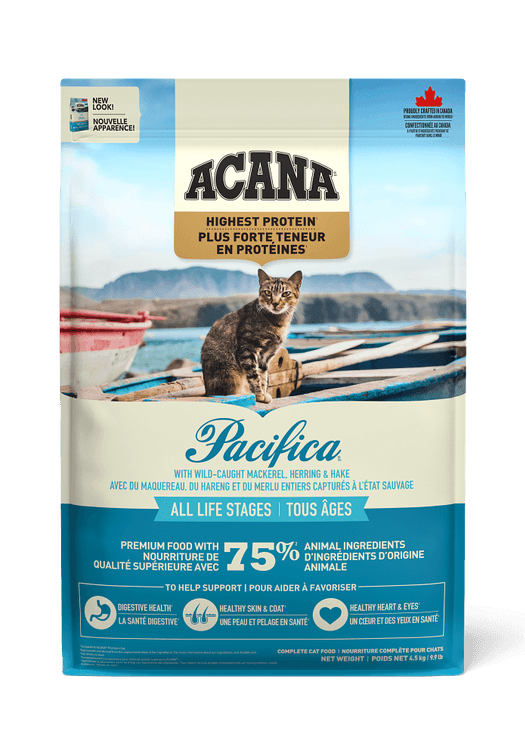 Rich with the highest level of animal protein1, our ACANA™ Highest Protein Wild Atlantic Recipe will satisfy your cat completely with its rich fish ingredients and flavour. Crafted with 75% animal ingredients2 including wild-caught whole mackerel, herring and hake, this recipe provides your cat with a variety of nourishing animal protein. This nutrient-dense recipe also helps support key health benefits including your cat’s digestive health, healthy skin & coat, and healthy heart & eyes. Nurture your feline completely with the rich animal protein and nutrition in ACANA Highest Protein Wild Atlantic Recipe!