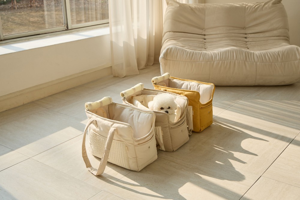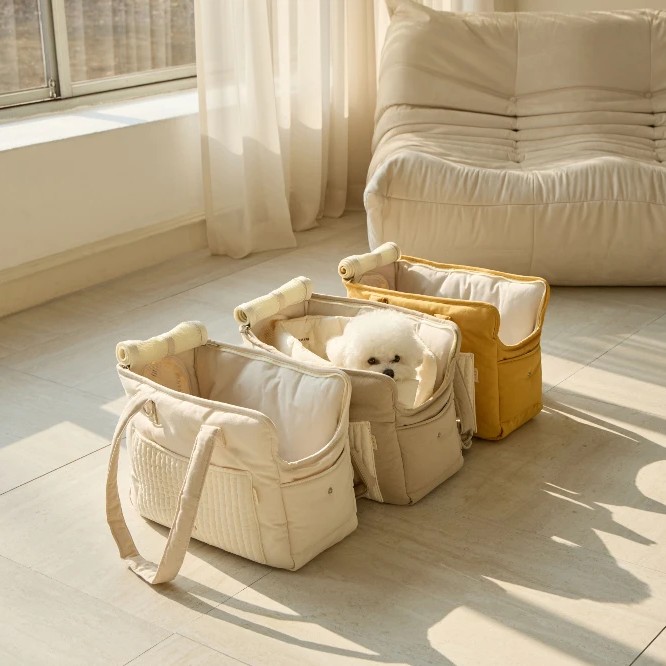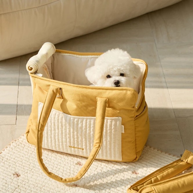 ba&ttang 绗缝口袋二合一宠物外出包 芥末黄小号 3kg以内 猫狗包手提斜挎单肩