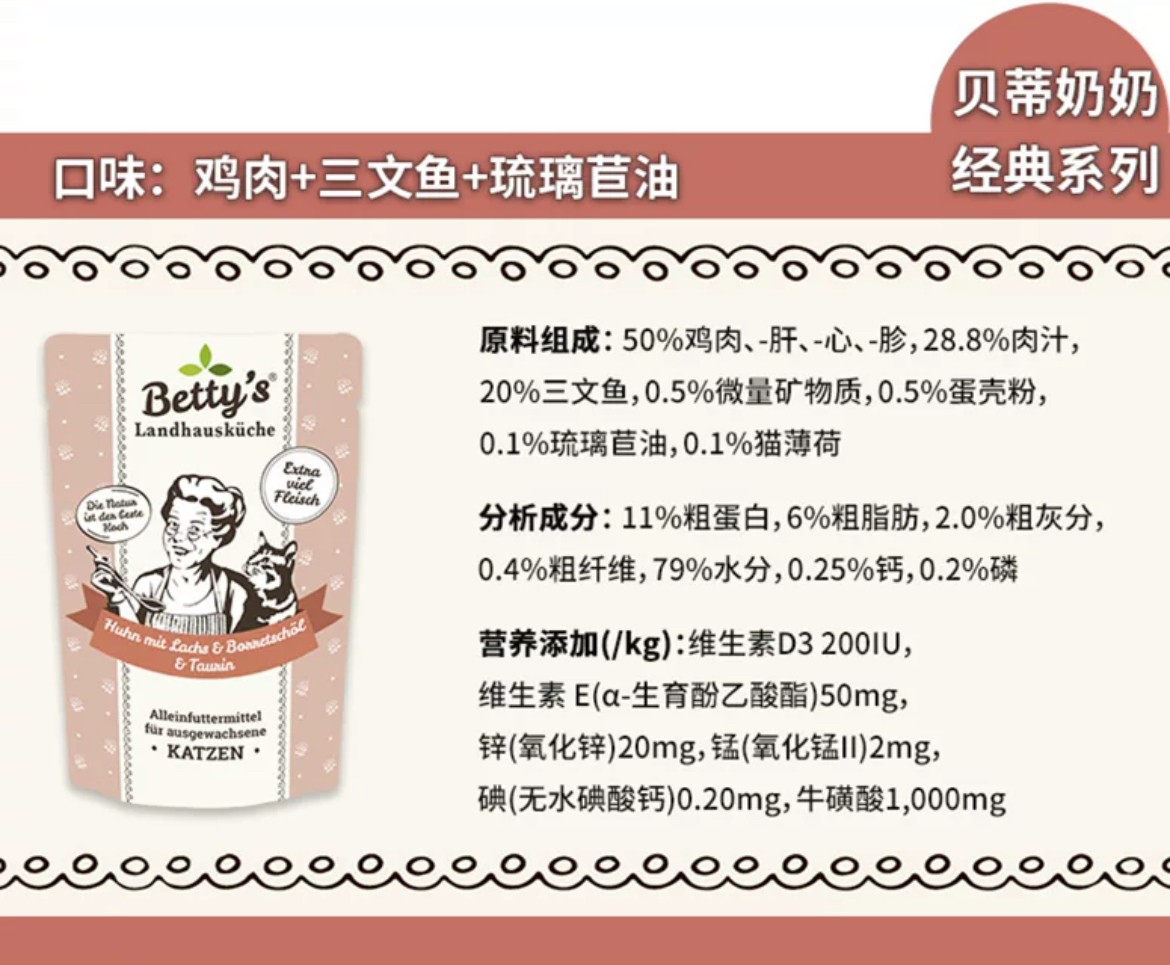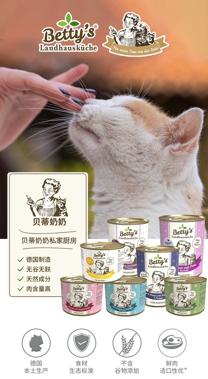 Betty's贝蒂奶奶 德国老奶奶猫咪主食罐头湿粮 德罐餐包无谷高肉含量