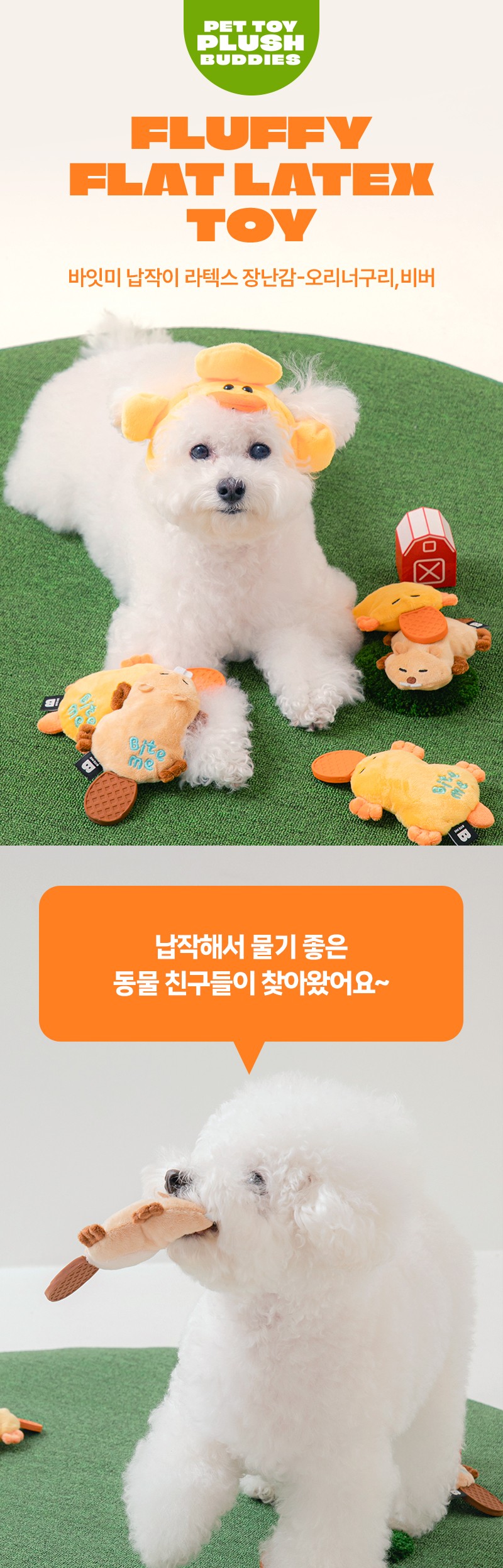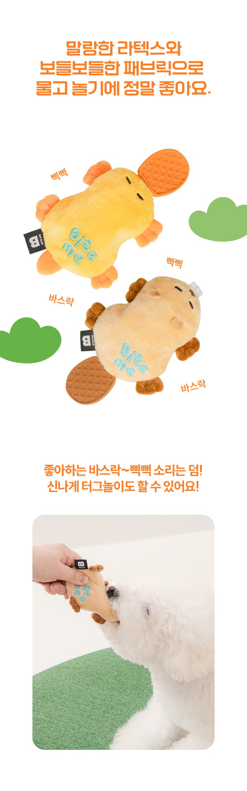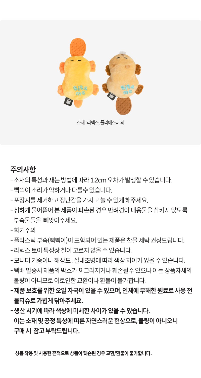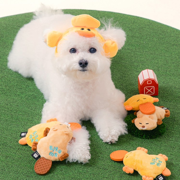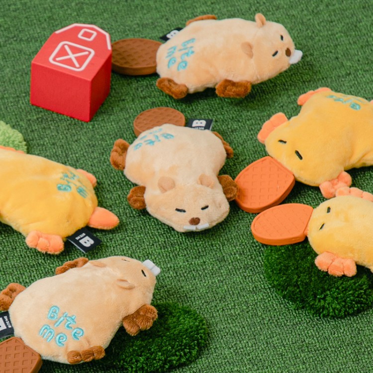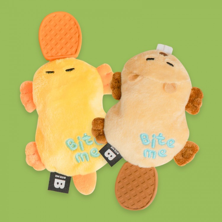 BiteMe 发声球响纸狗玩具 扁平乳胶耐咬磨牙 海狸/鸭嘴兽 bm