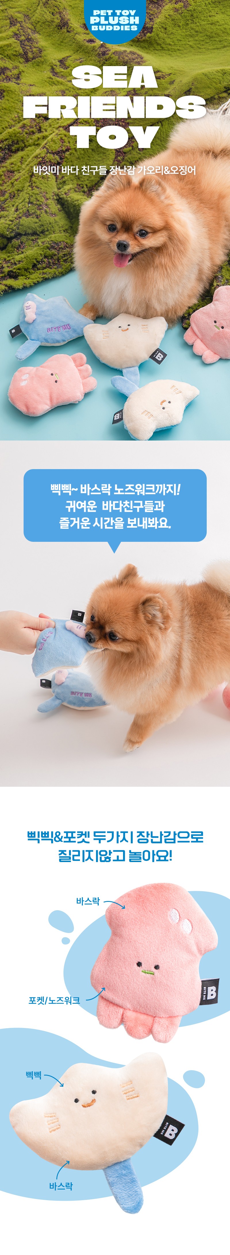 BiteMe 海洋朋友玩具套组 魟鱼鱿鱼 发声球响纸闻嗅bm