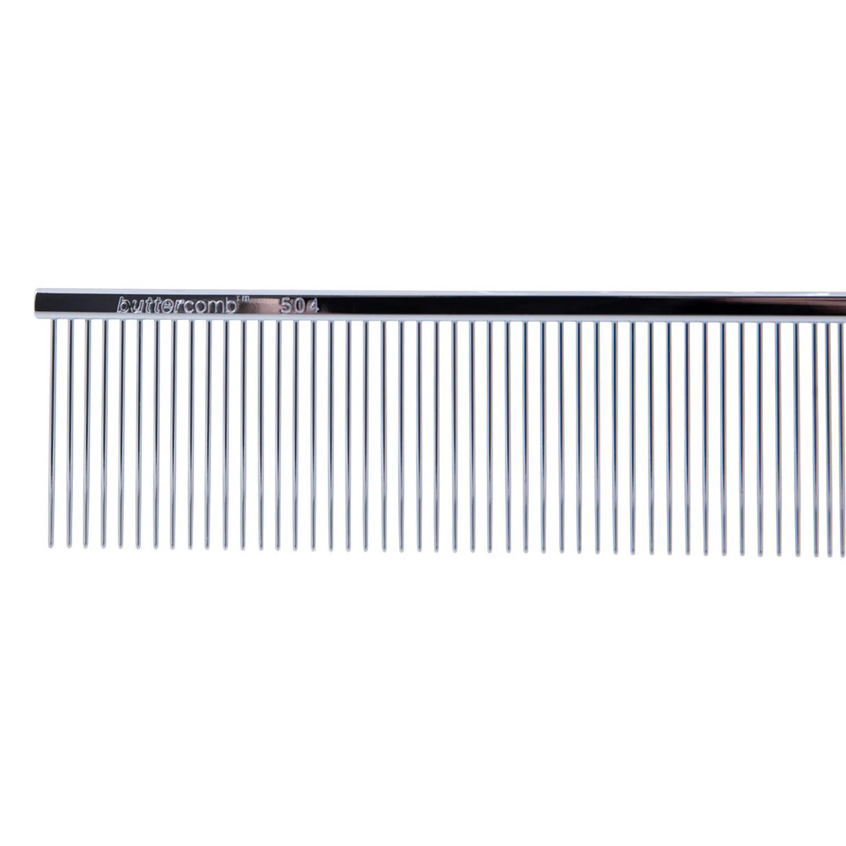 The Chris Christensen 500 Series Greyhound-Style Combination Buttercomb is perfect for every day maintenance and styling. This Fine/Coarse combination comb glides gently through the coat without snagging or breakage. Great for everyday use on most breeds of dogs and cats.