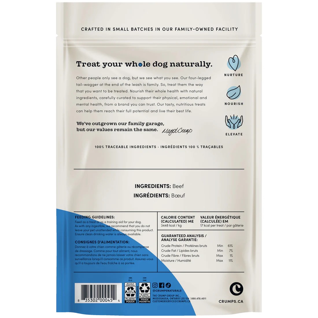 Crumps’ Naturals Beef Tendersticks™ are a single ingredient high protein treat, made from 100% North American beef.