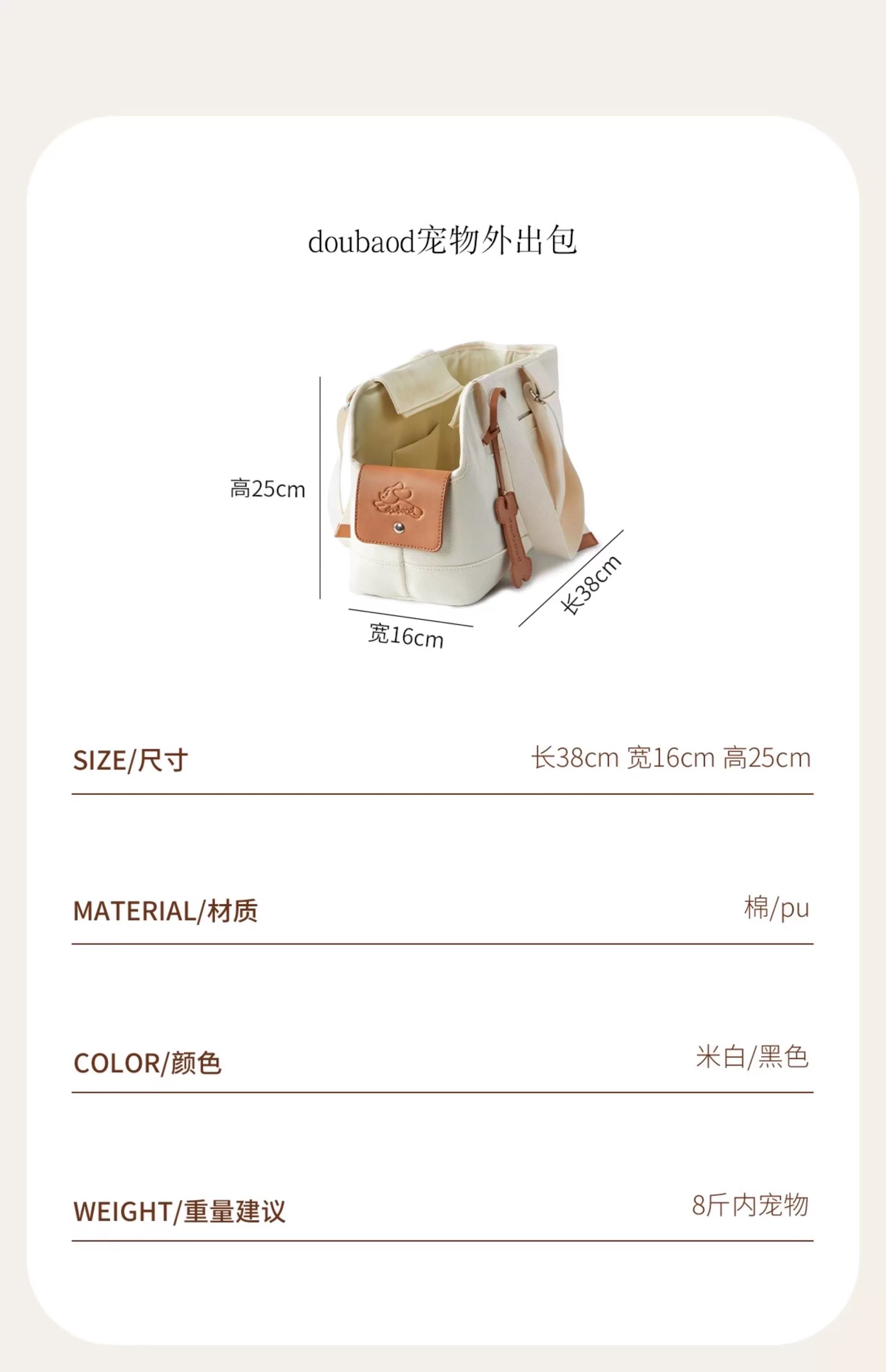doubaod 帆布宠物外出包 猫狗便携多功能车载包