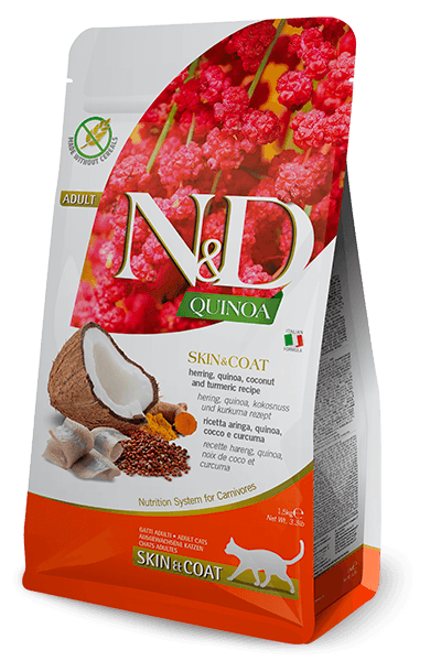 Quail, quinoa, coconut and turmeric recipe for adult cats is formulated to meet the nutritional levels established by the AAFCO Cat Food Nutrient Profiles for maintenance