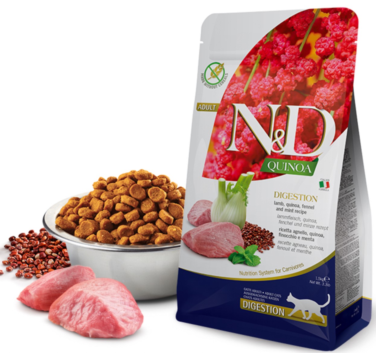 Lamb, quinoa, fennel and mint recipe for adult cats is formulated to meet the nutritional levels established by the AAFCO Cat Food Nutrient Profiles for maintenance.