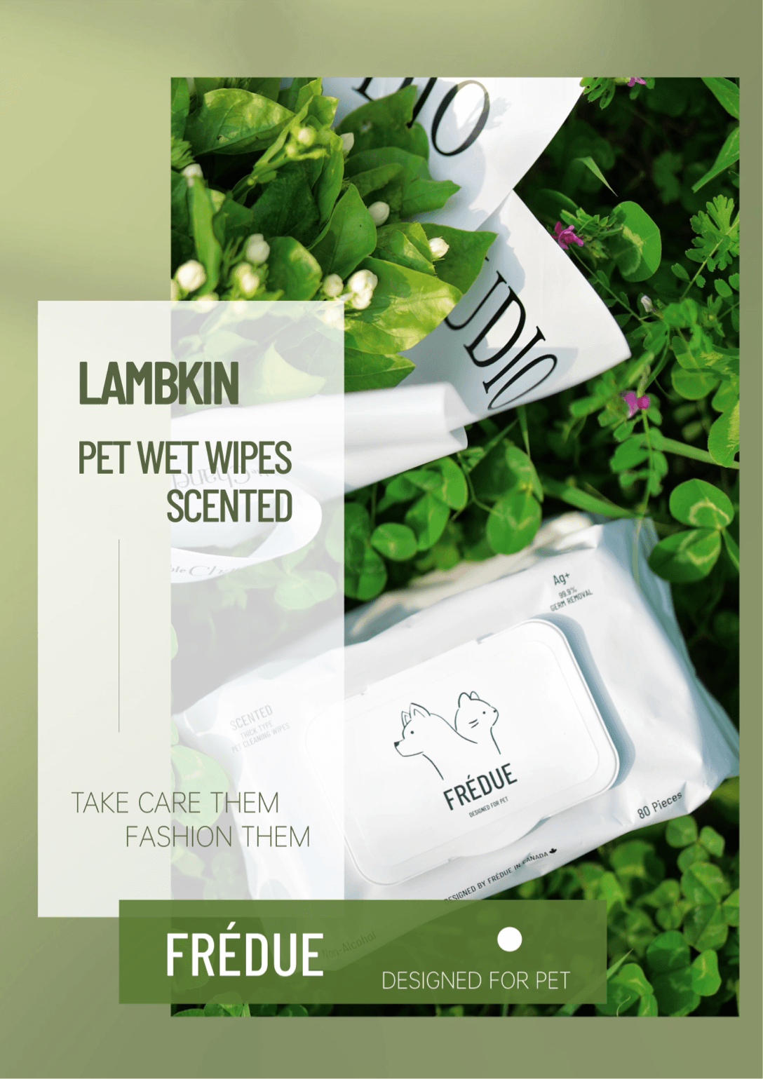 FRÉDUE, with its dedication to premium pet care, proudly presents the LAMBKIN Pet-Specific Non-Alcoholic Cleansing and Antibacterial Wet Wipes — a standout innovation in the pet care industry.