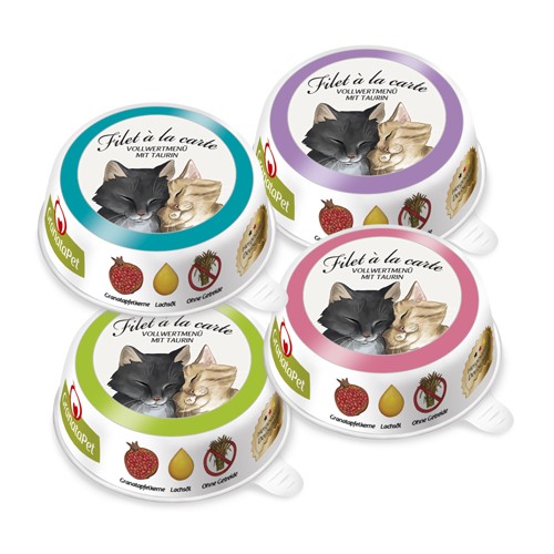 GranataPet Filet à la carte is a tasty complete meal made from tender pieces of fillet. The recipe is refined with high-quality salmon oil and pomegranate seeds. Gently cooked in its own broth, this first-class natural wet food is particularly tasty and easily digestible. The salmon oil protects your cat's skin and ensures a silky, shiny coat. There are also minerals, taurine and other vitalising ingredients that make the succulent menu a balanced, complete diet.