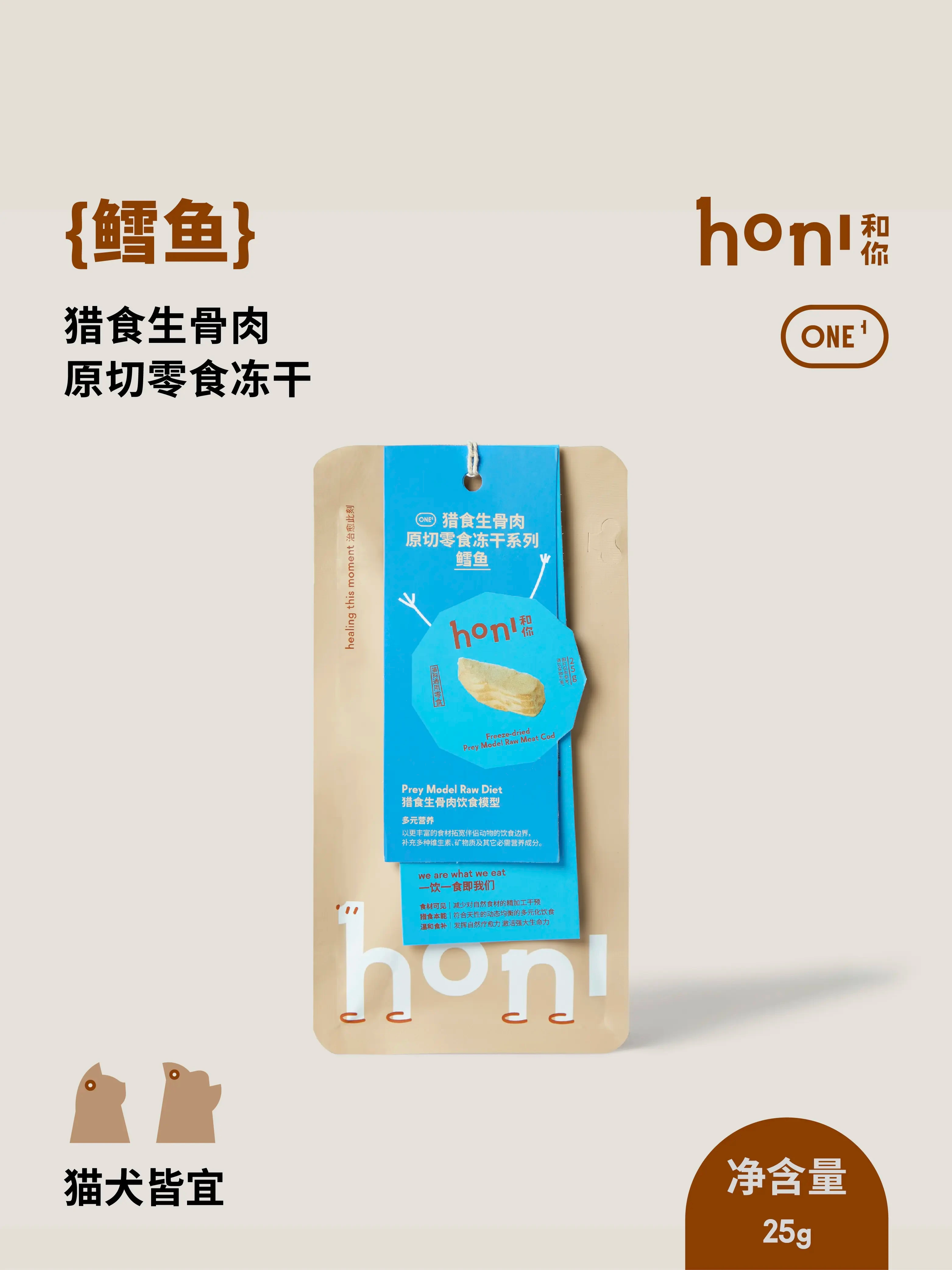 honi和你 鳕鱼冻干零食 猎食生骨肉原切零食 小鱼干营养 25g
