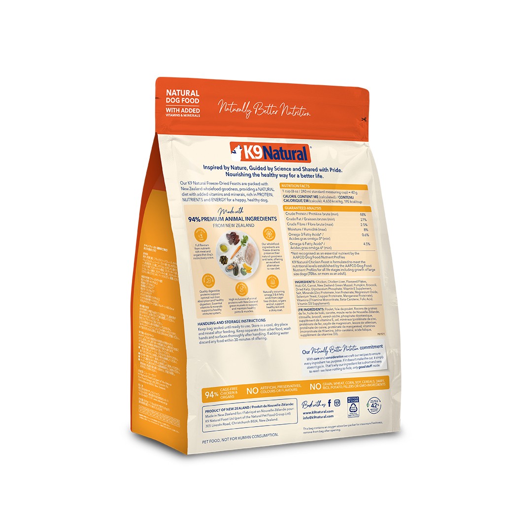 Made with cage-free Chicken, even the pickiest of eaters are drawn to the natural flavours of K9 Natural Freeze-Dried Chicken. Perfect for any fussy eater or sensitive stomach.