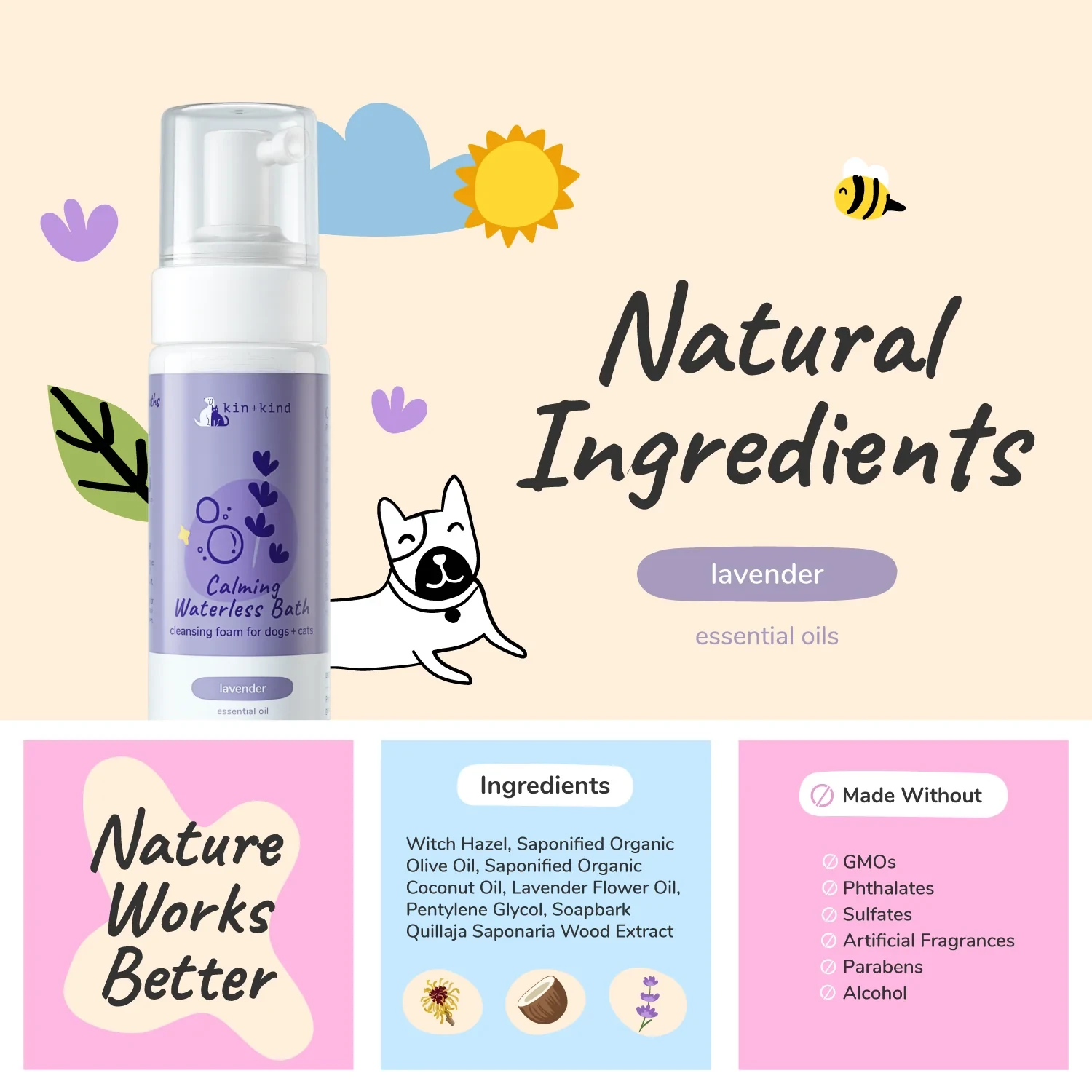 Rinse Free Clean: Your pet hates baths, so get clean and skip the fuss. Cleanse your pet's skin, coat, and paws between baths and after walks. Our rinse-free foam is made from natural soap for a real clean.