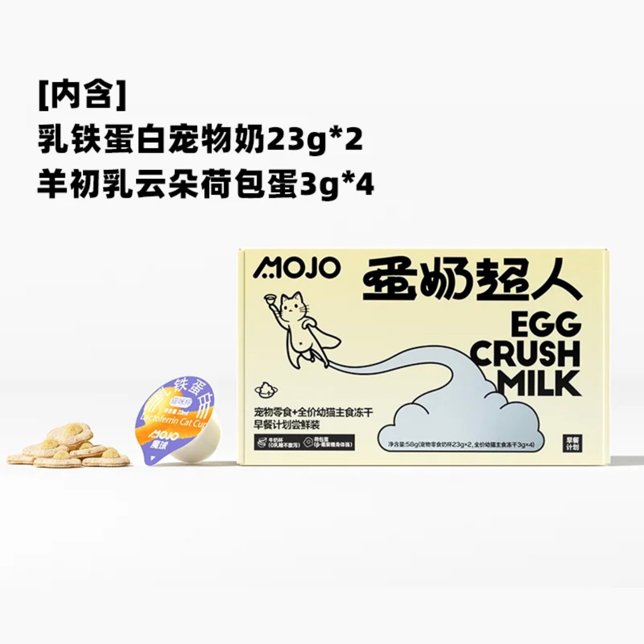 Mojo魔球 蛋奶超人早餐计划尝鲜装 全价猫用主食冻干牛奶杯罐头
