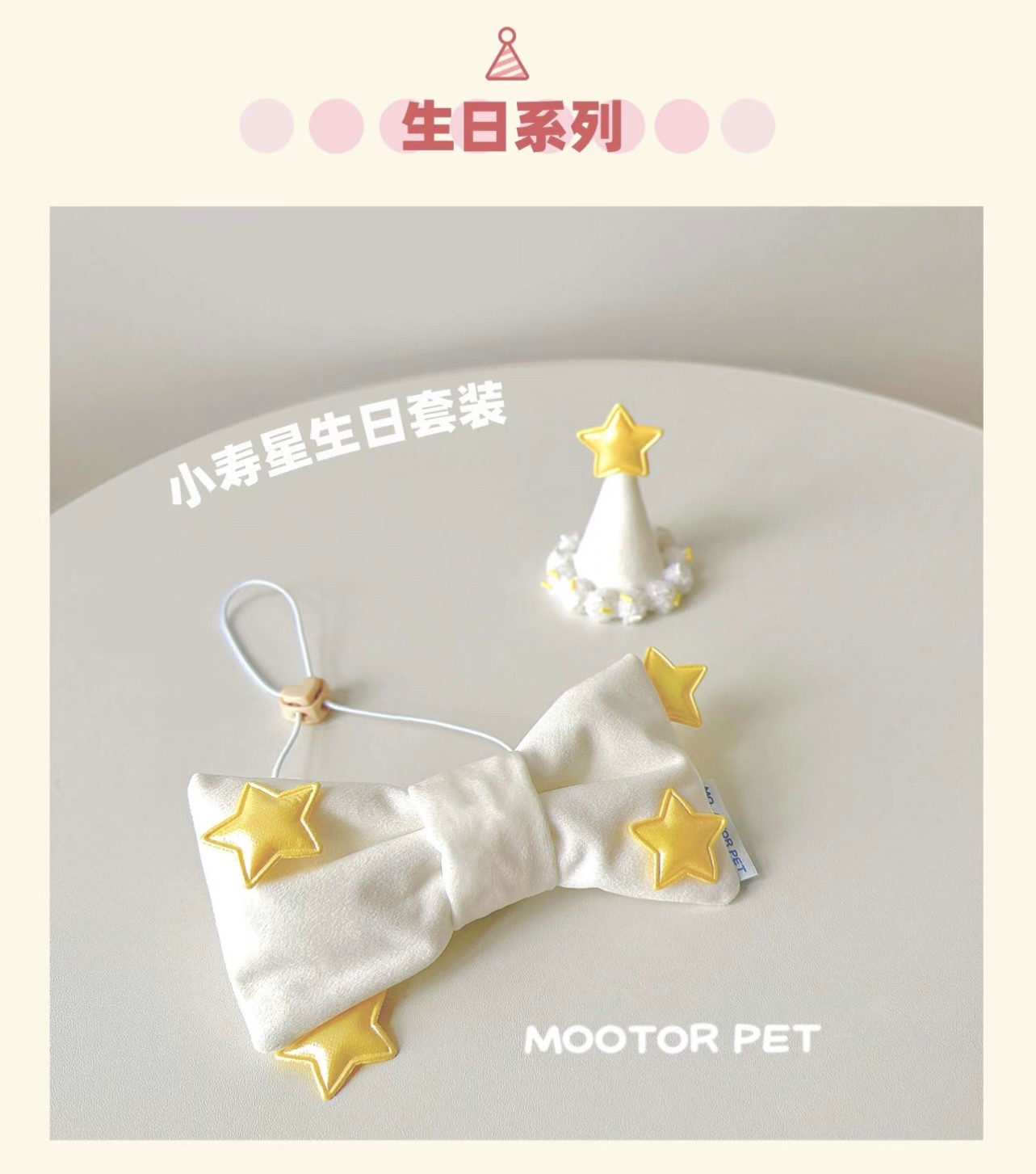 MOOTOR摸摸头 小寿星生日蝴蝶结 宠物猫狗围兜帽子装饰