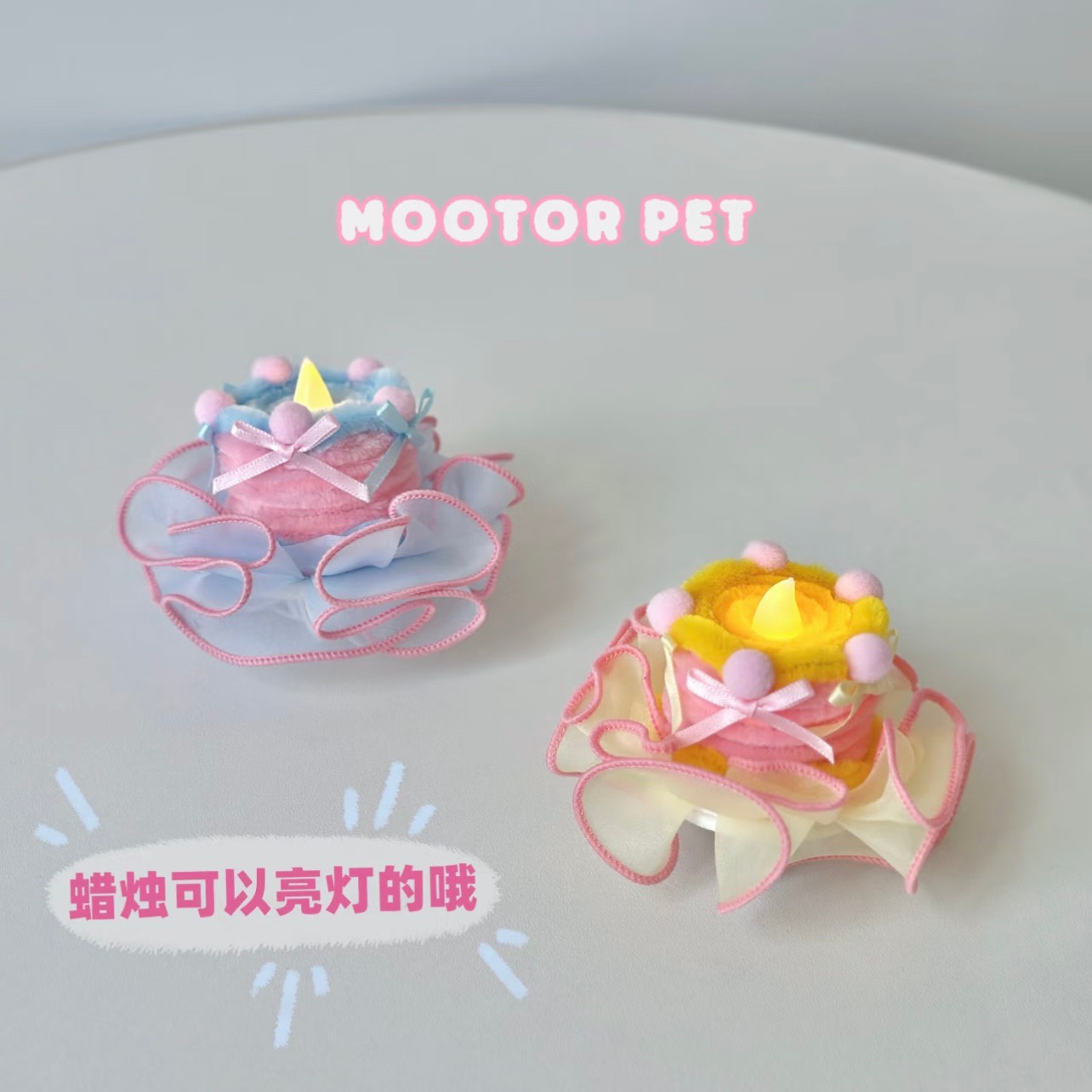 MOOTOR摸摸头 果冻蛋糕生日套装 宠物猫狗围兜帽子装饰 蓝色款