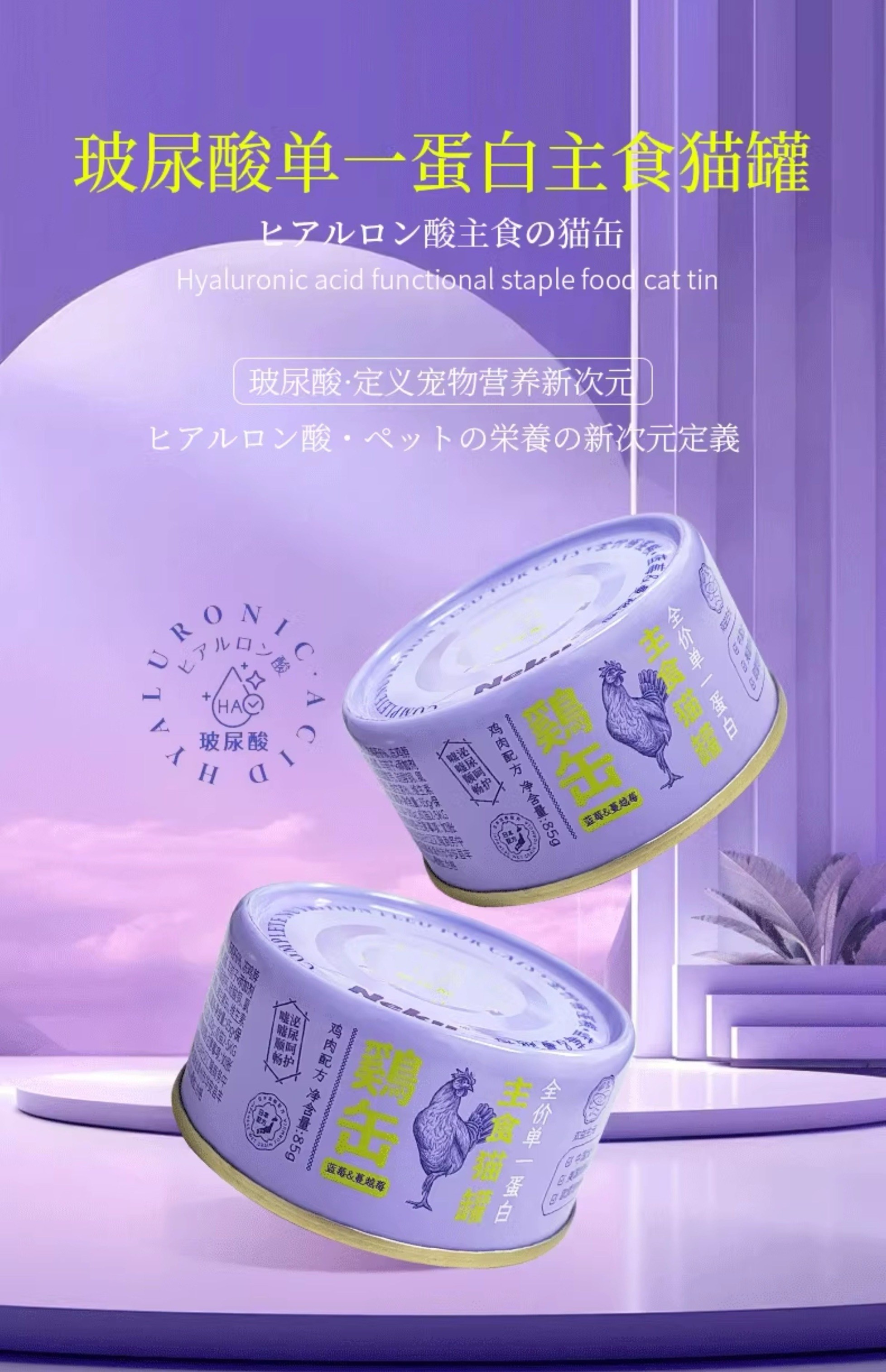 Neku呢酷紫罐 单一蛋白主食猫罐 85g 鸡肉蓝莓蔓越莓玻尿酸
