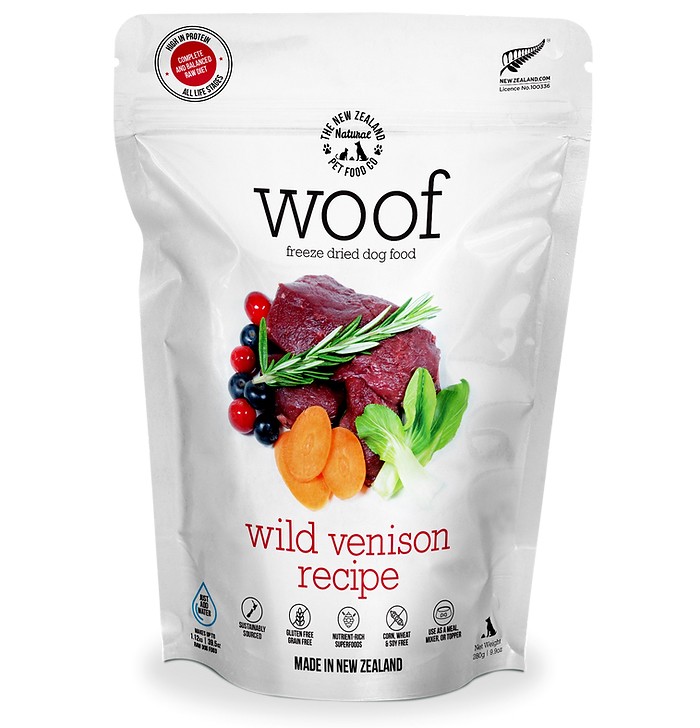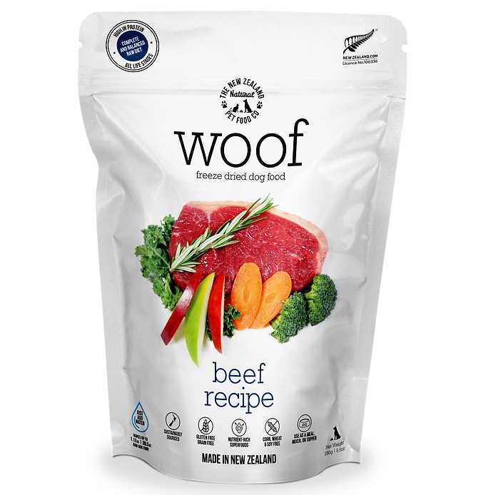 WOOF is made using only the highest quality ingredients aimed at nourishing your pet's health. We combine the nutrition and taste of fresh, raw food and put it through a gentle freeze drying process which protects all the natural enzymes and nutrients, so none of the wholesome goodness is cooked out.