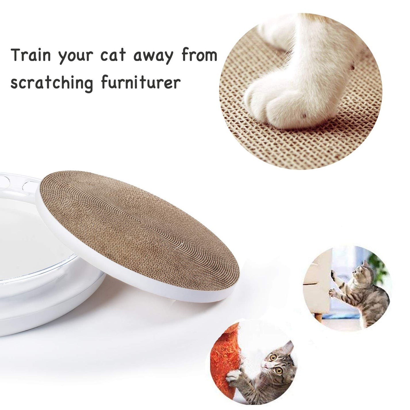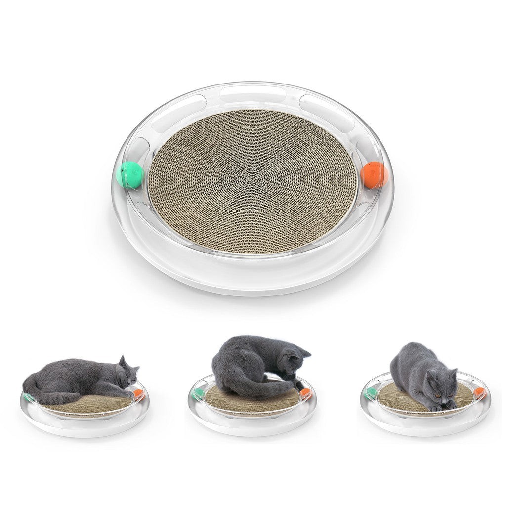 Made of ABS which is a stable and healty material to cats, Transparent ball track can easily attrack cats attention playing with balls inside with a lot of fun. The compact size enables cats to release their inner energy. Green ball is with catnip packed. Orange ball is a bell ball. The ringing sound draws cats attention to kepping chasing the ball, doing more exercises and good for health. Paper scratcher can be easily replaced while it also can be a bed to cats.