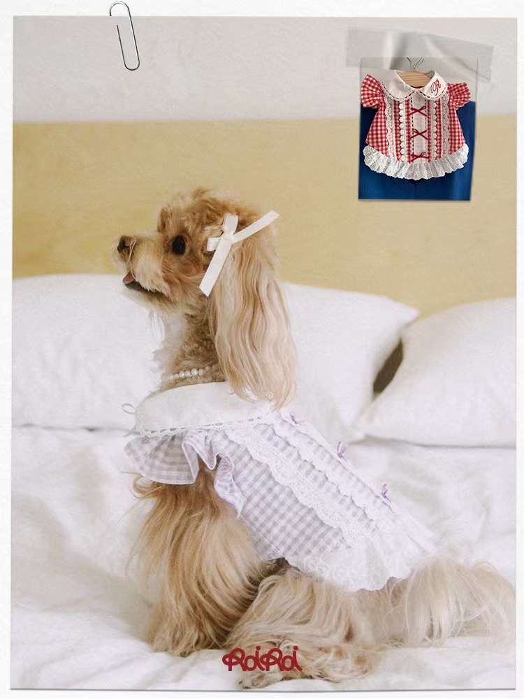 ROIROI "格纹物语"-原创设计狗狗猫咪衣服复古格子小飞袖衬衫