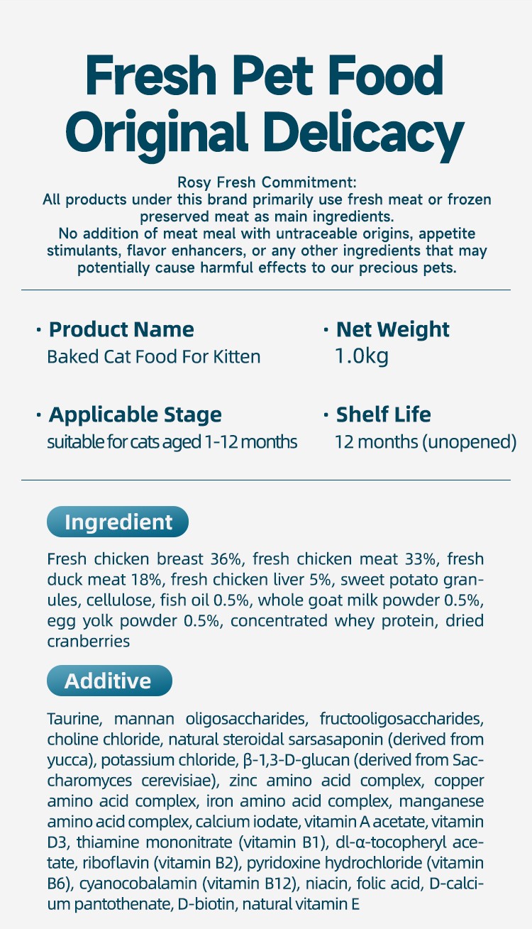 【预定】Rosy Fresh 鲜朗烘焙全价幼猫粮 1Kg