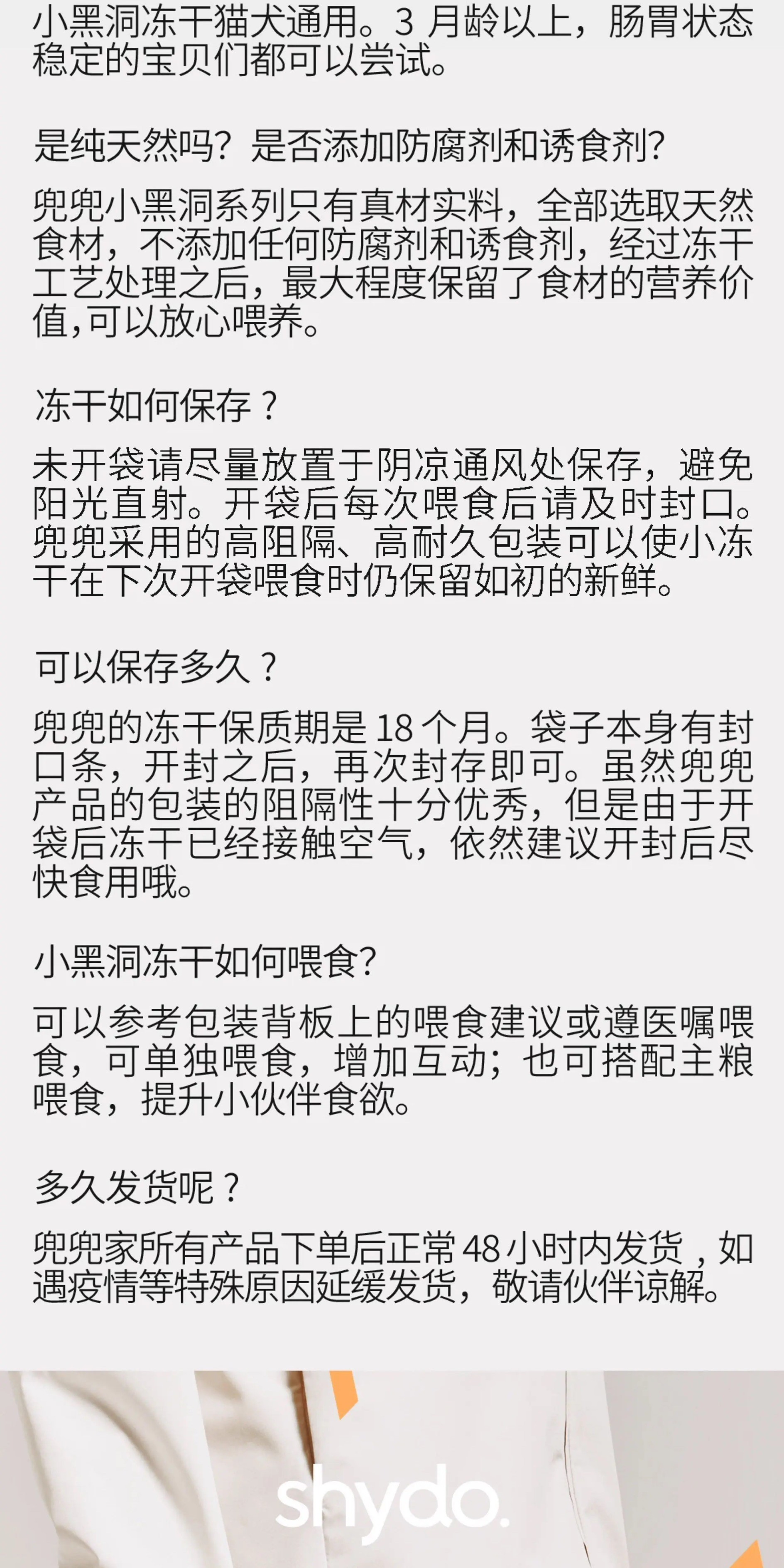Shydo晒兜 小方袋冻干零食 猫狗通用 鸡肉粒鸭肉粒猪里脊