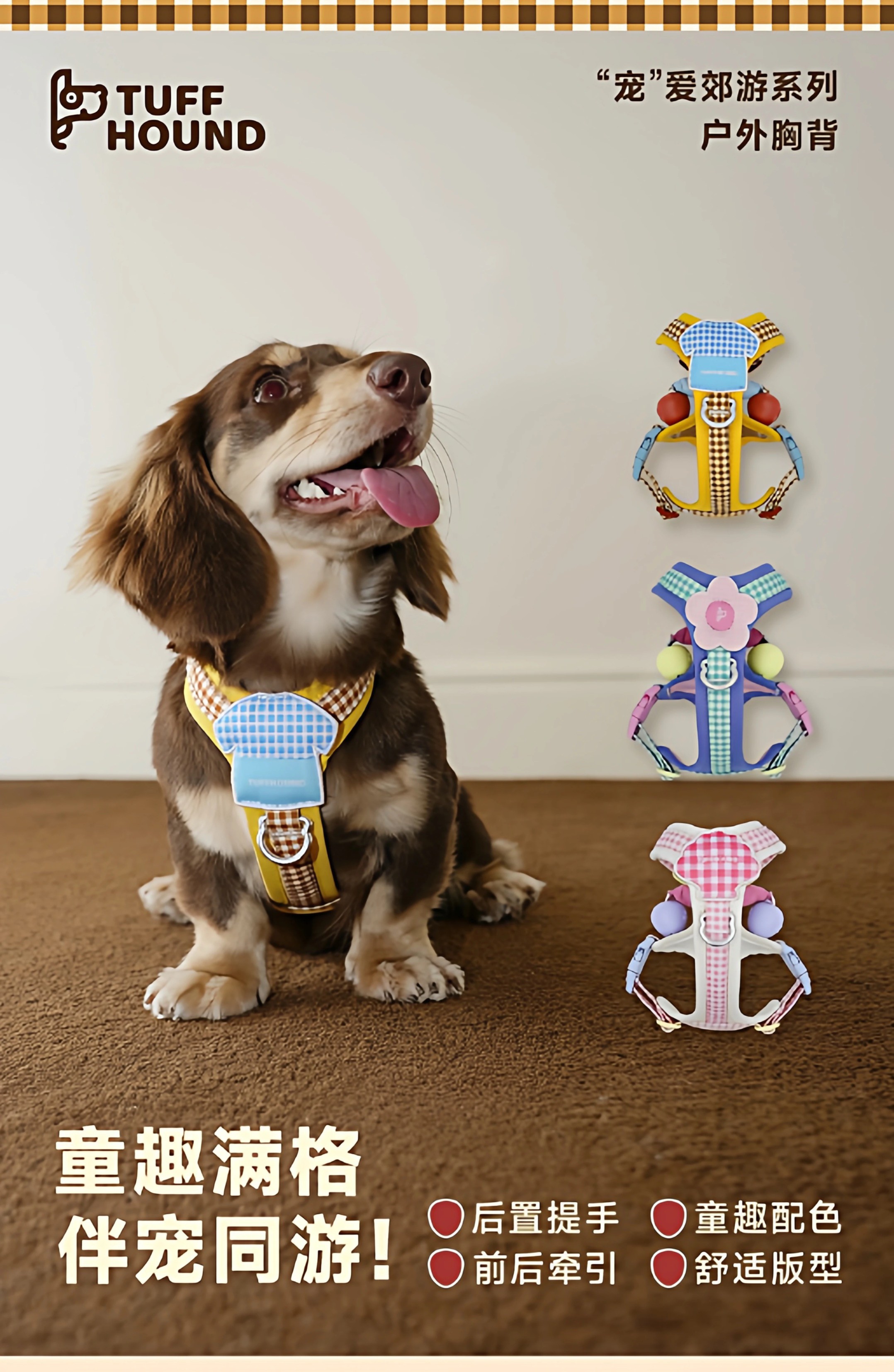 TuffHound 它愿 郊游系列Y字型中小型犬胸背牵引绳