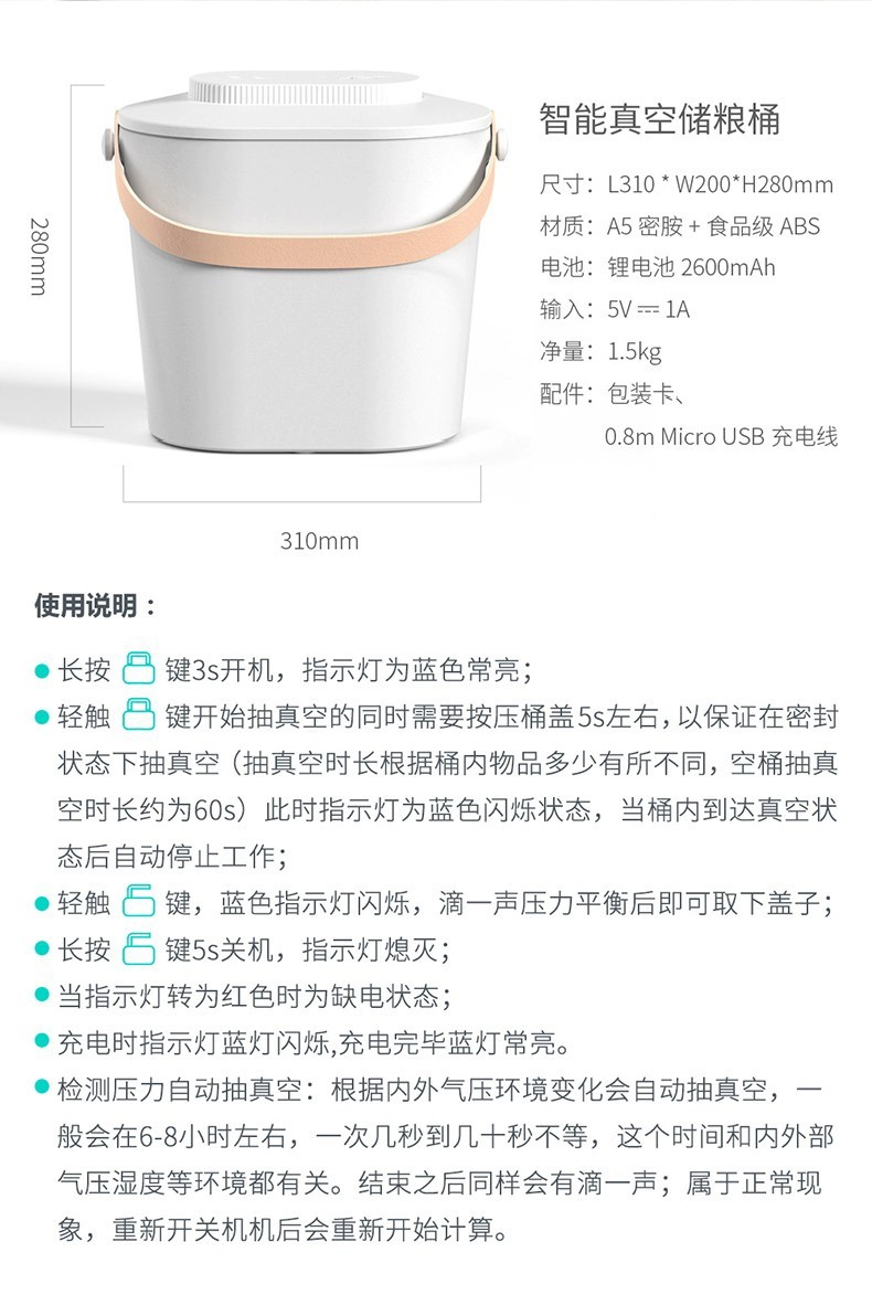 uah有哈 智能真空储粮桶 抽真空储存密封防潮防霉防虫
