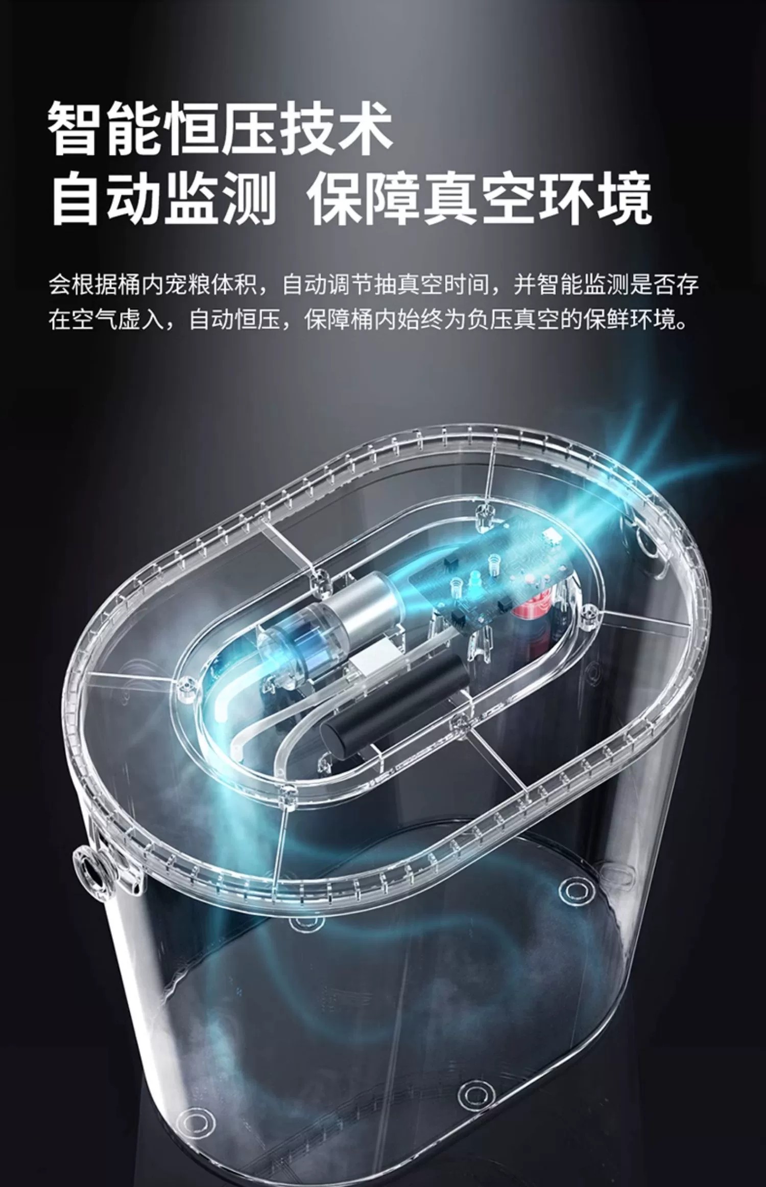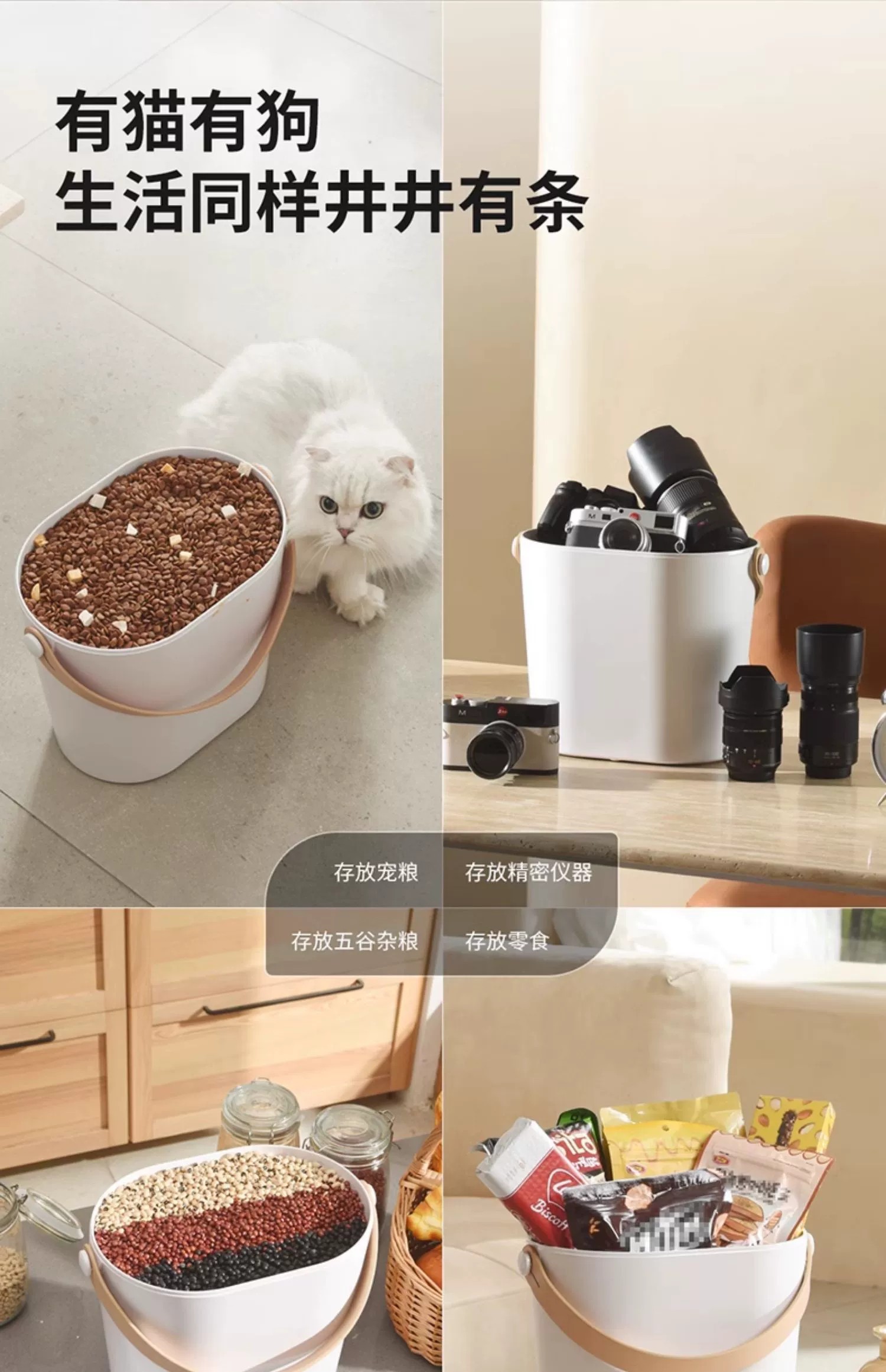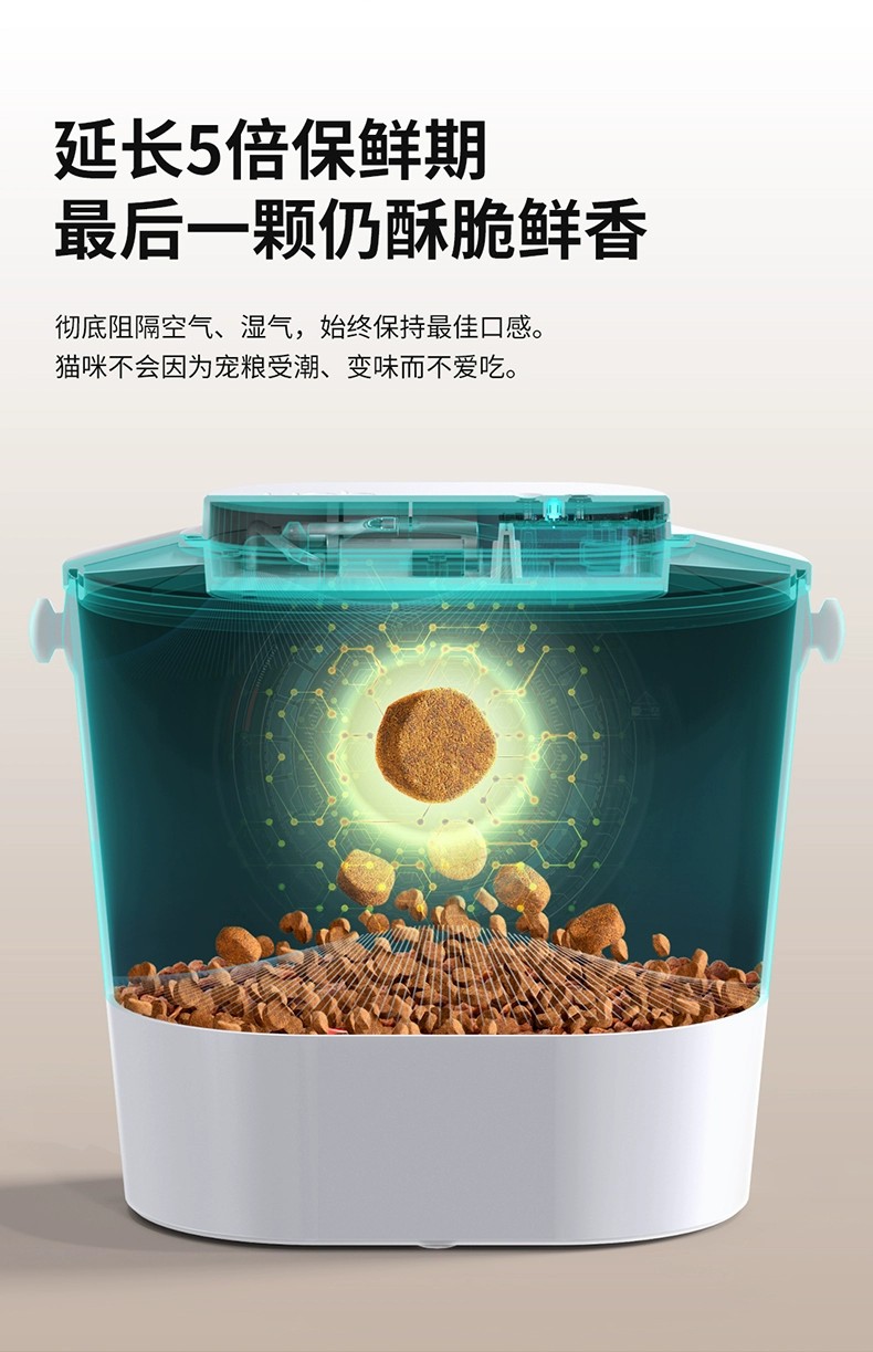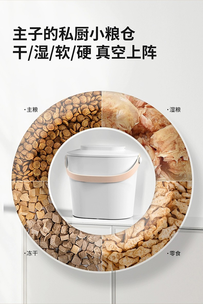 可存放5Kg左右的宠物干粮(因颗粒大小不同,略有差异)