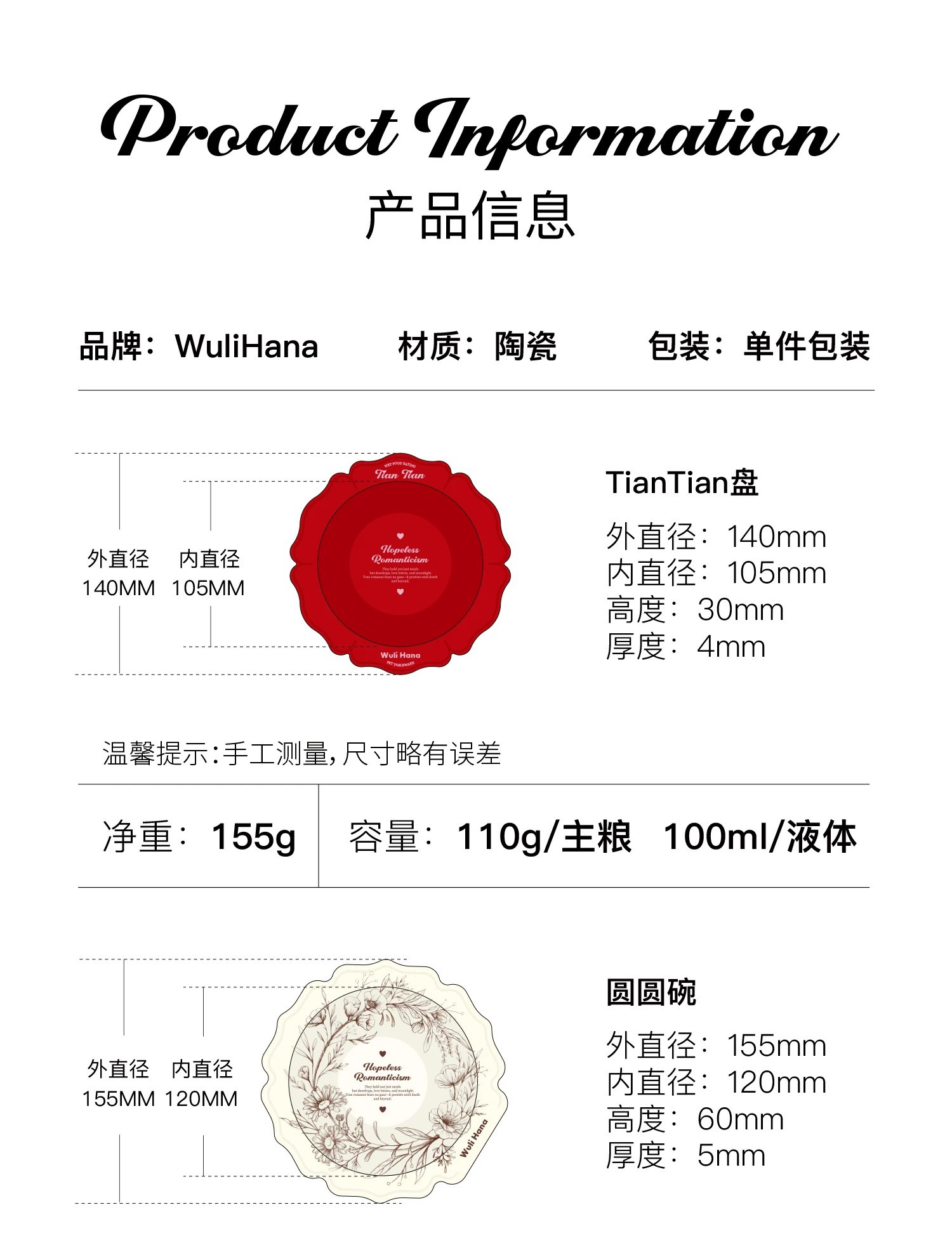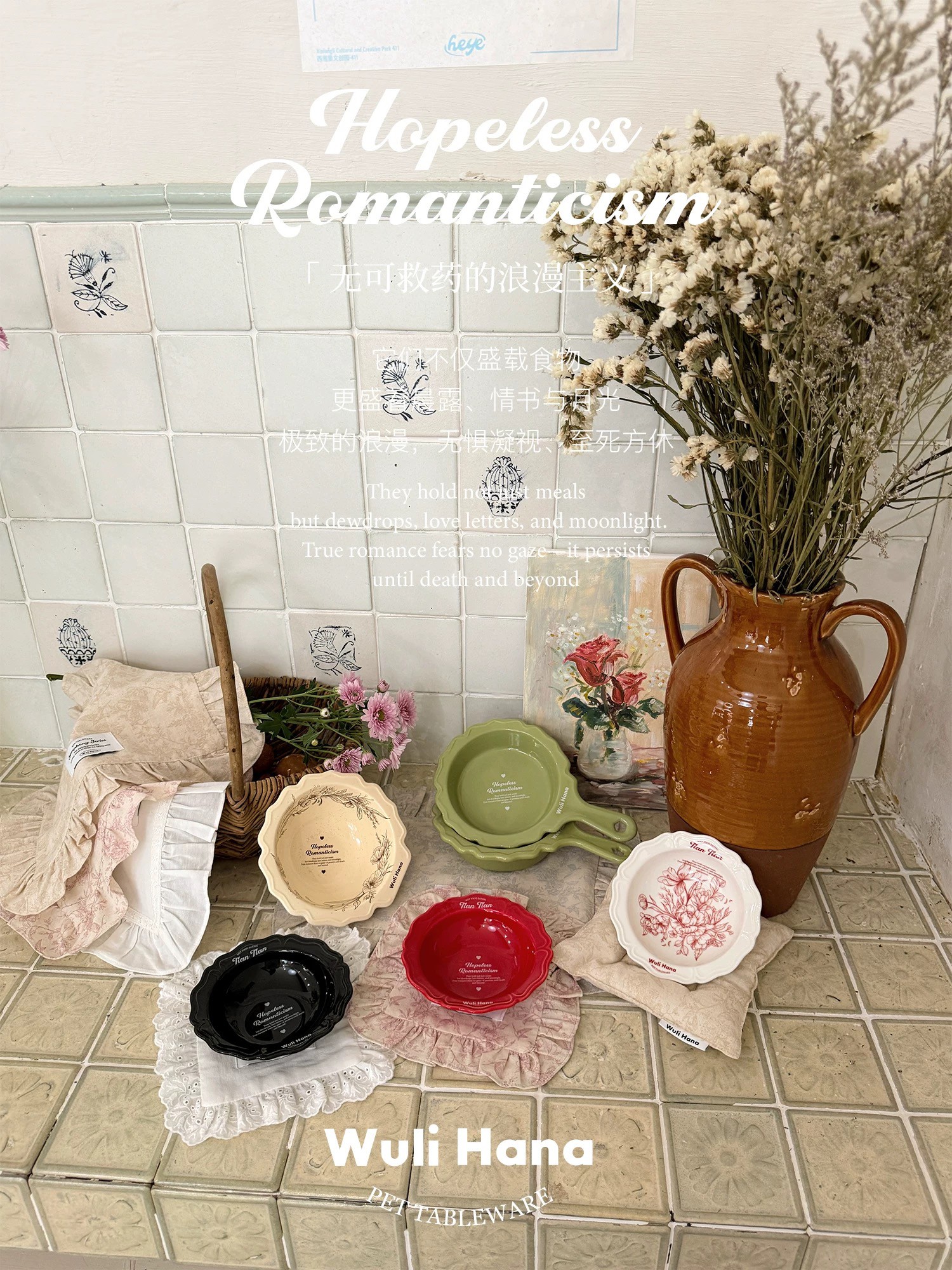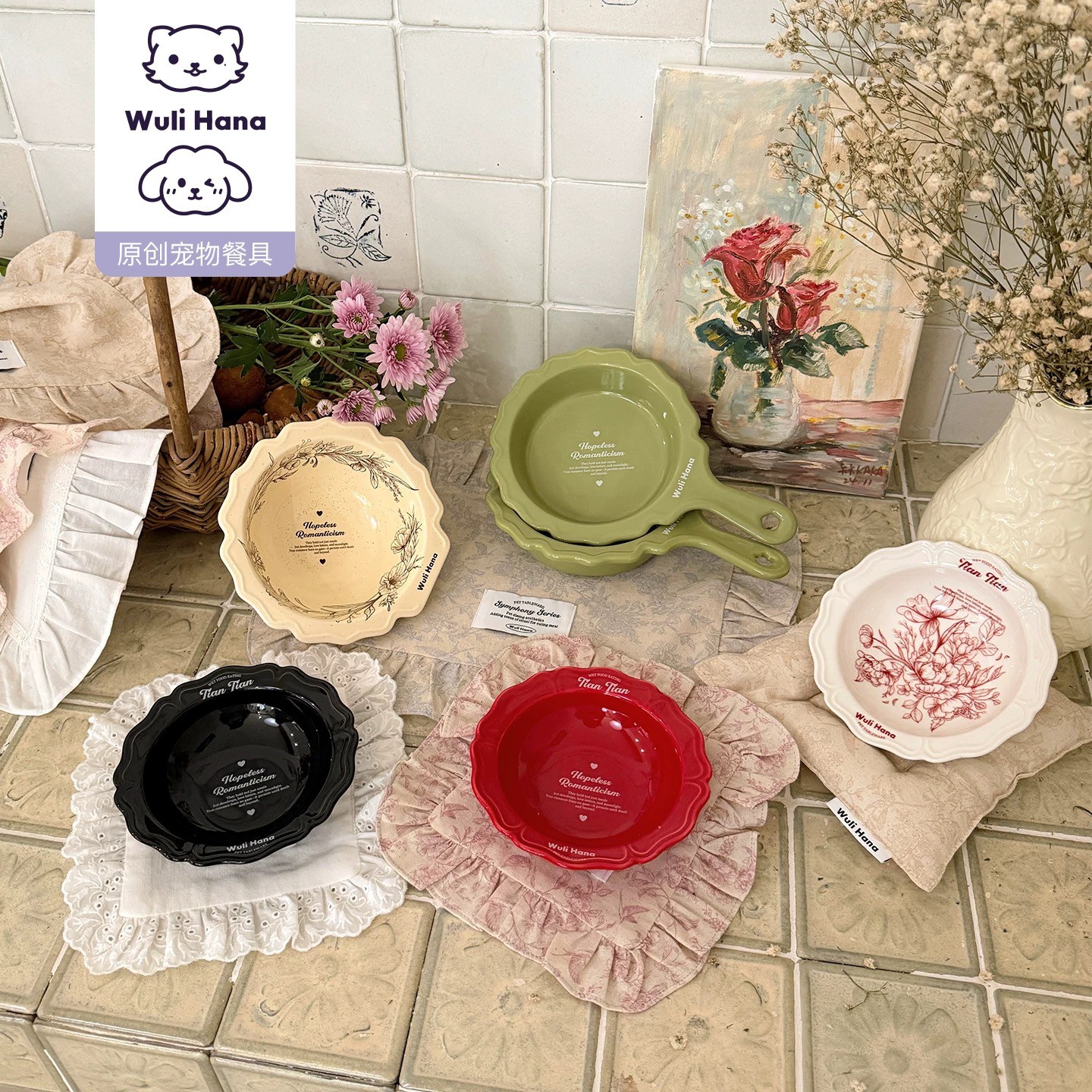 Wuli Hana 窝里横 无可救药的浪漫主义 宠物猫狗法式高温陶瓷餐具水碗