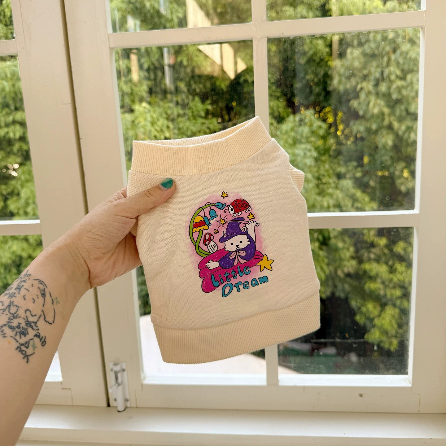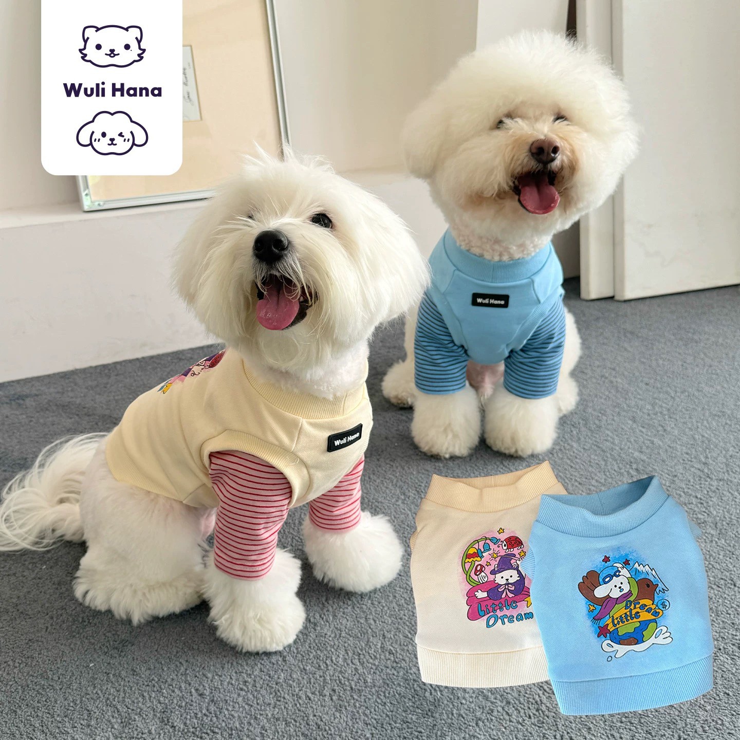Wuli Hana 窝里横 飞跃梦际奇境 猫狗衣服假两件印花卫衣