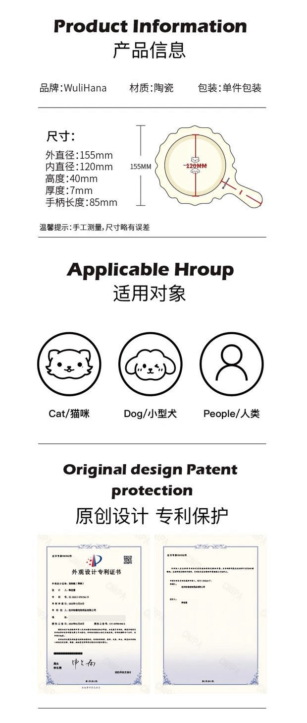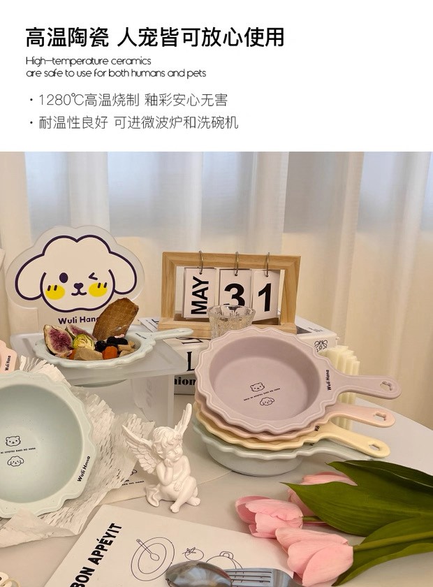 Wuli Hana 窝里横 BianBian锅 宠物猫狗法式陶瓷平底锅餐具水碗