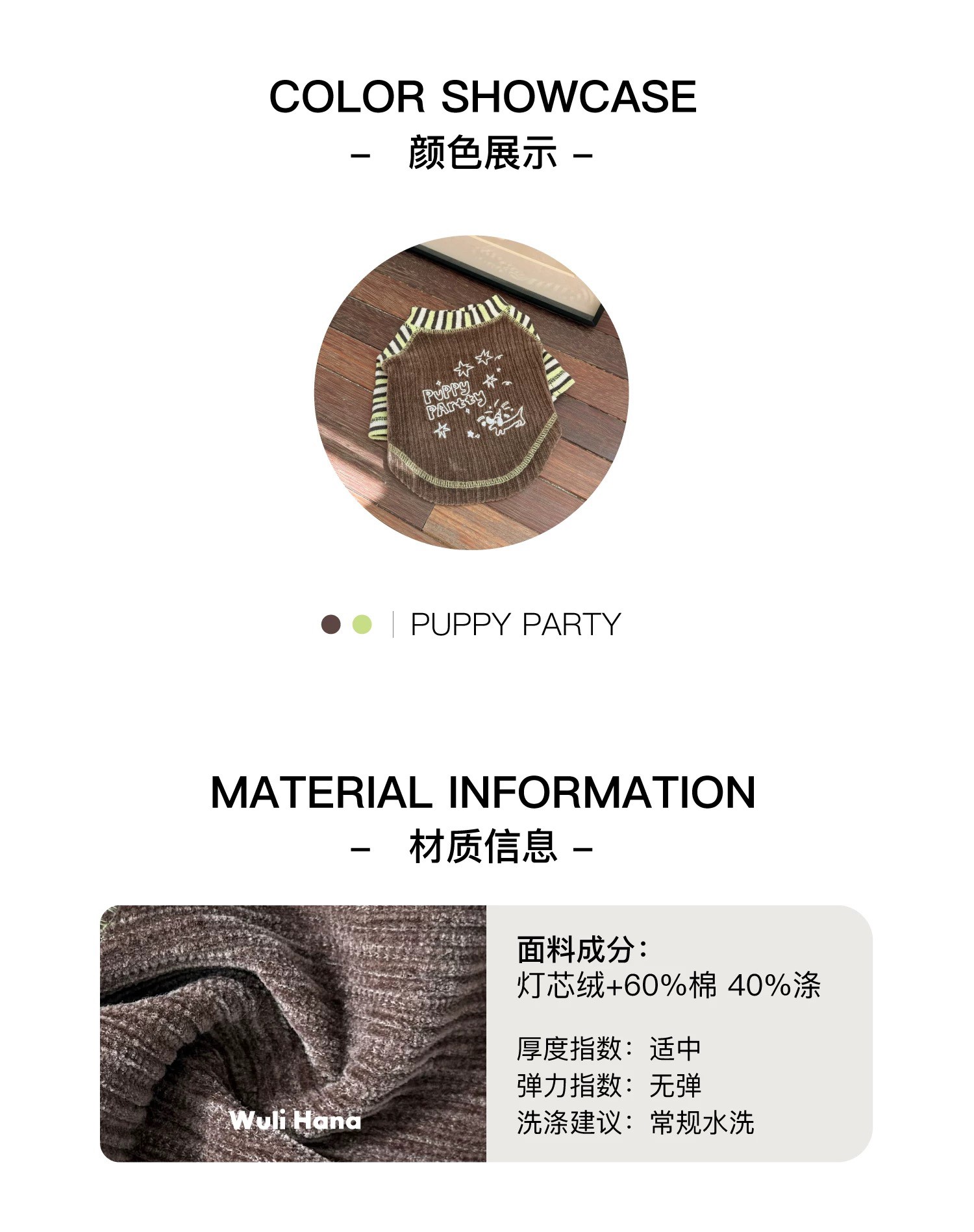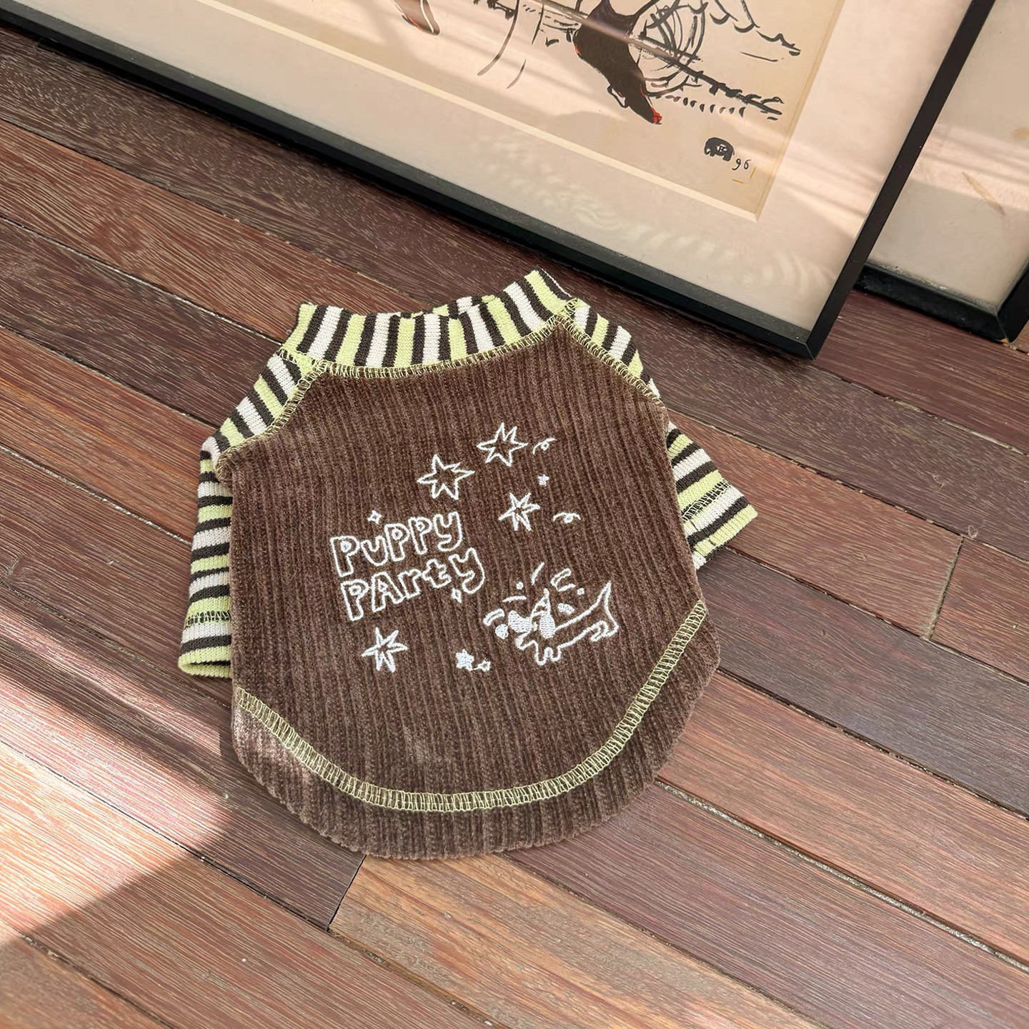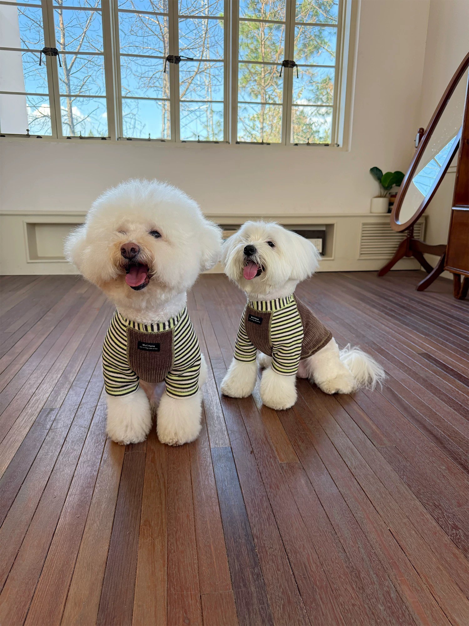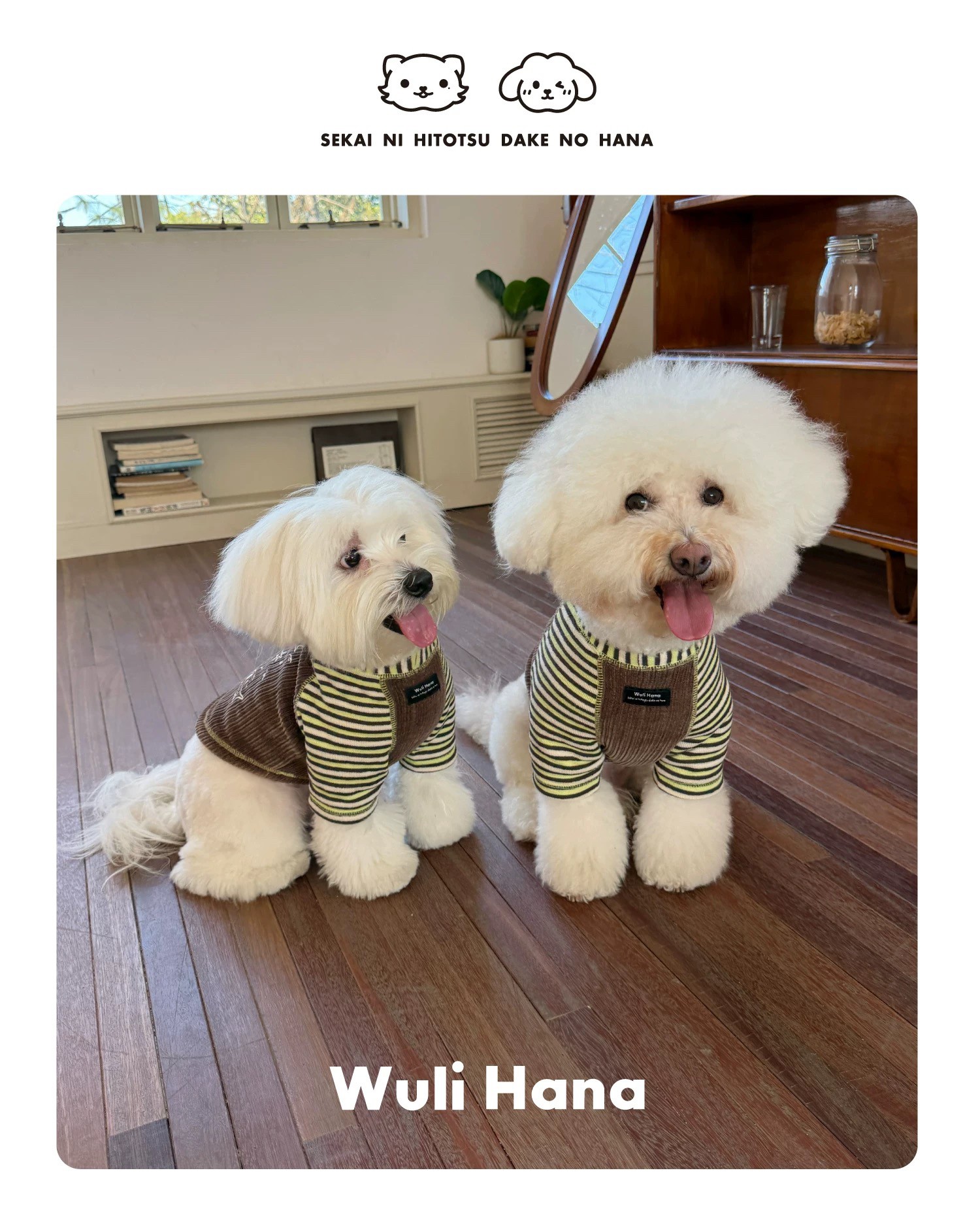Wuli Hana 窝里横 Puppy Party 灯芯绒条纹长袖T恤猫狗衣服卫衣