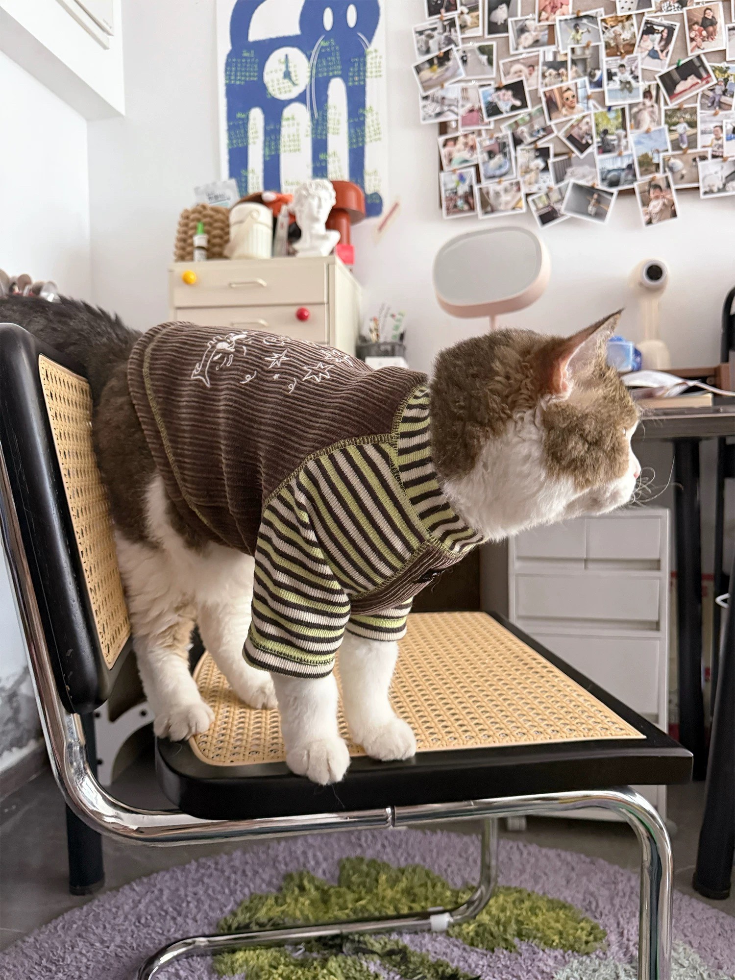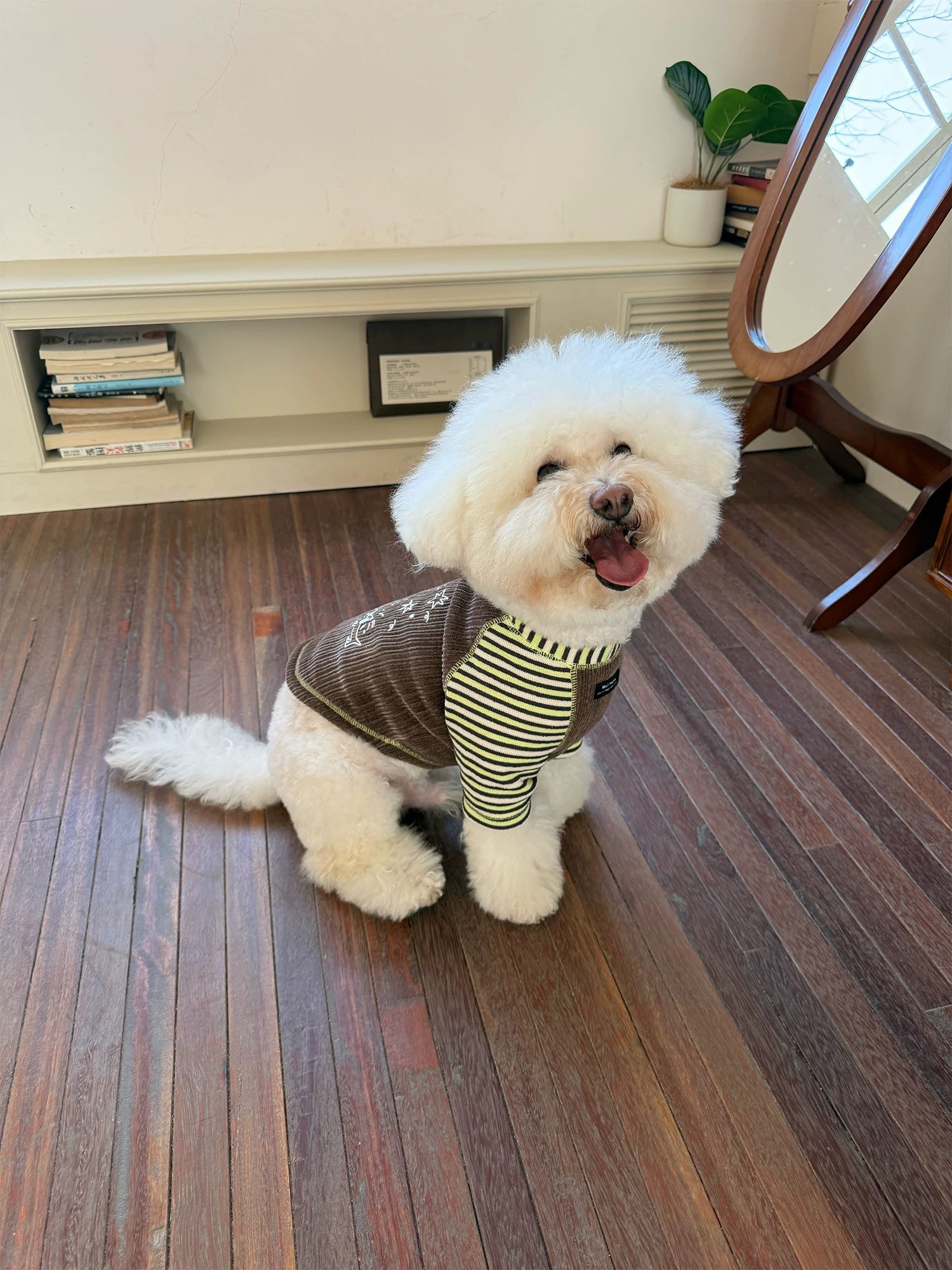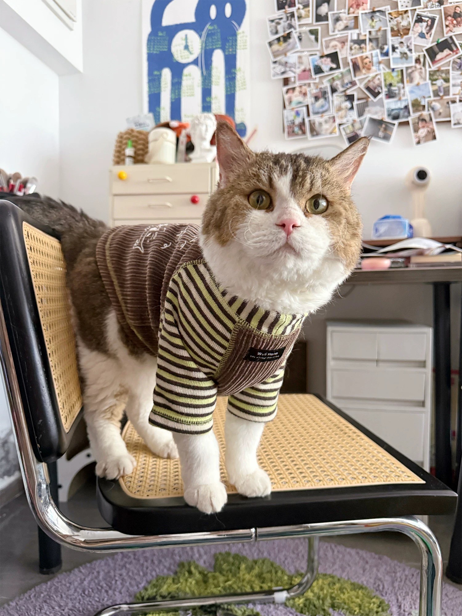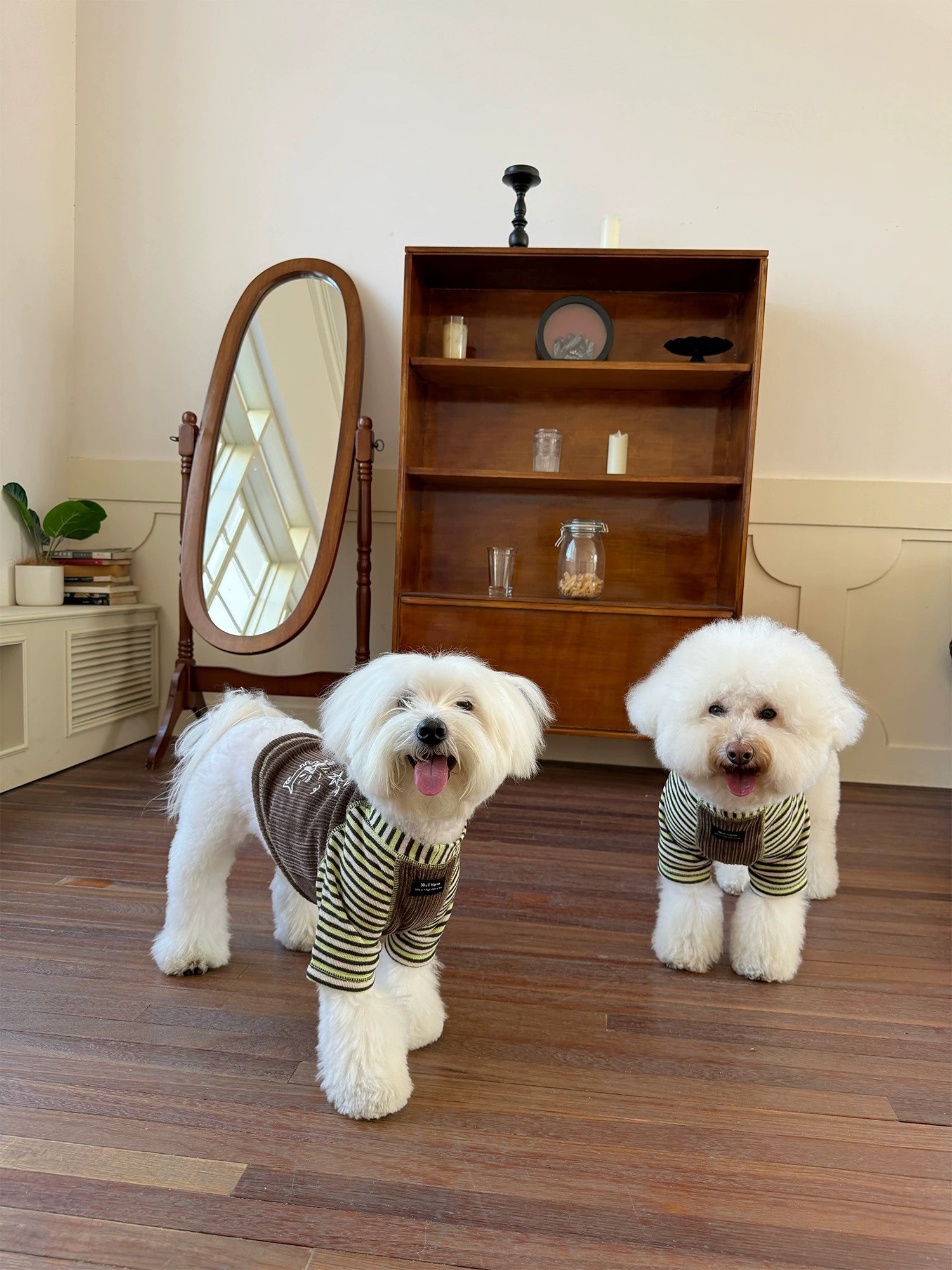 Wuli Hana 窝里横 Puppy Party 灯芯绒条纹长袖T恤猫狗衣服卫衣