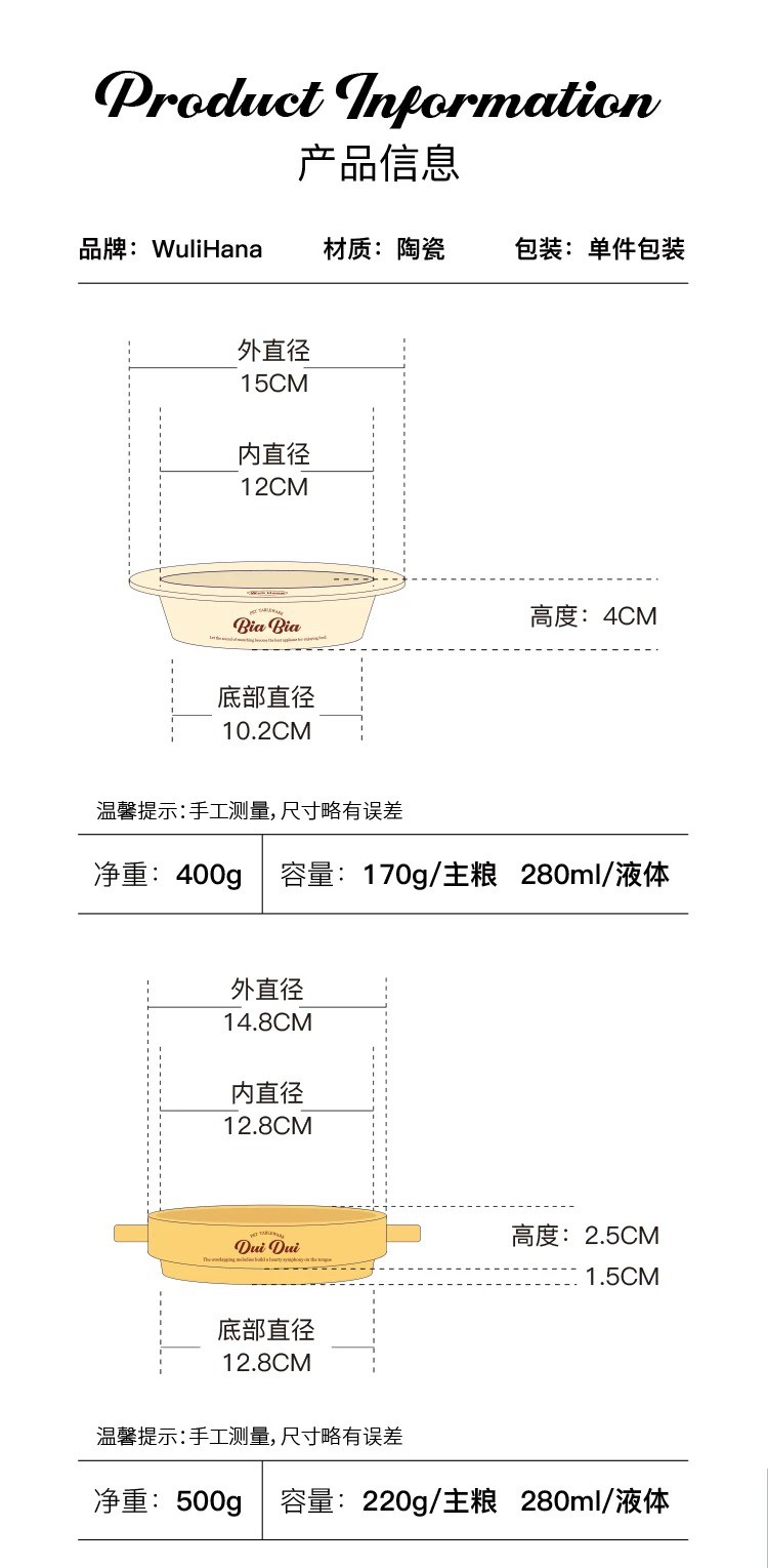 Wuli Hana 窝里横 DuiDui迷你锅BiaBia碗 宠物猫狗陶瓷双耳锅水碗