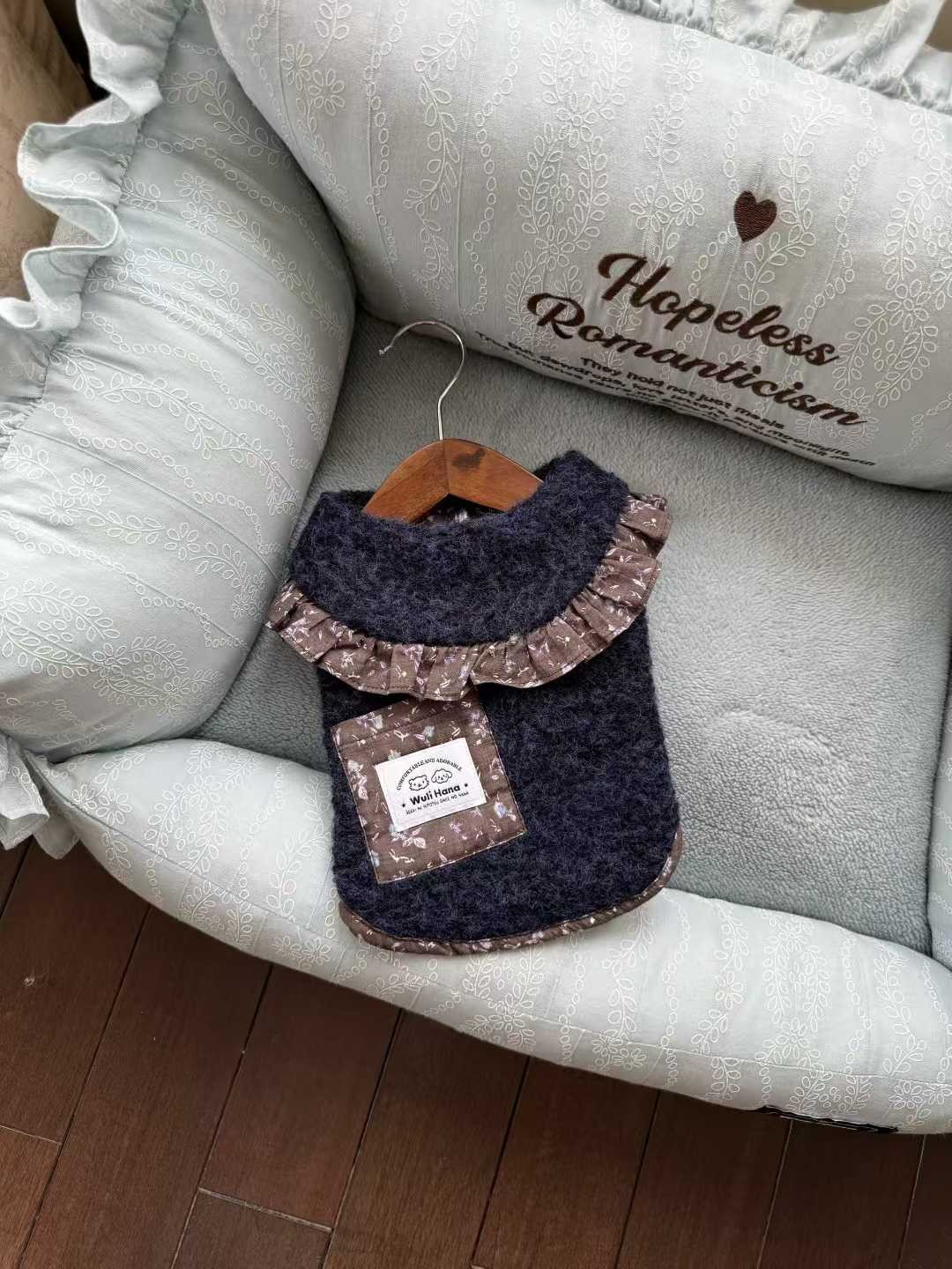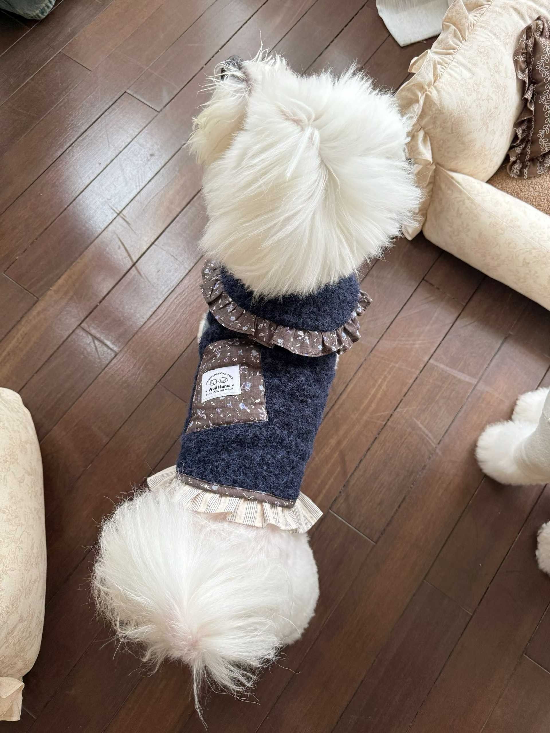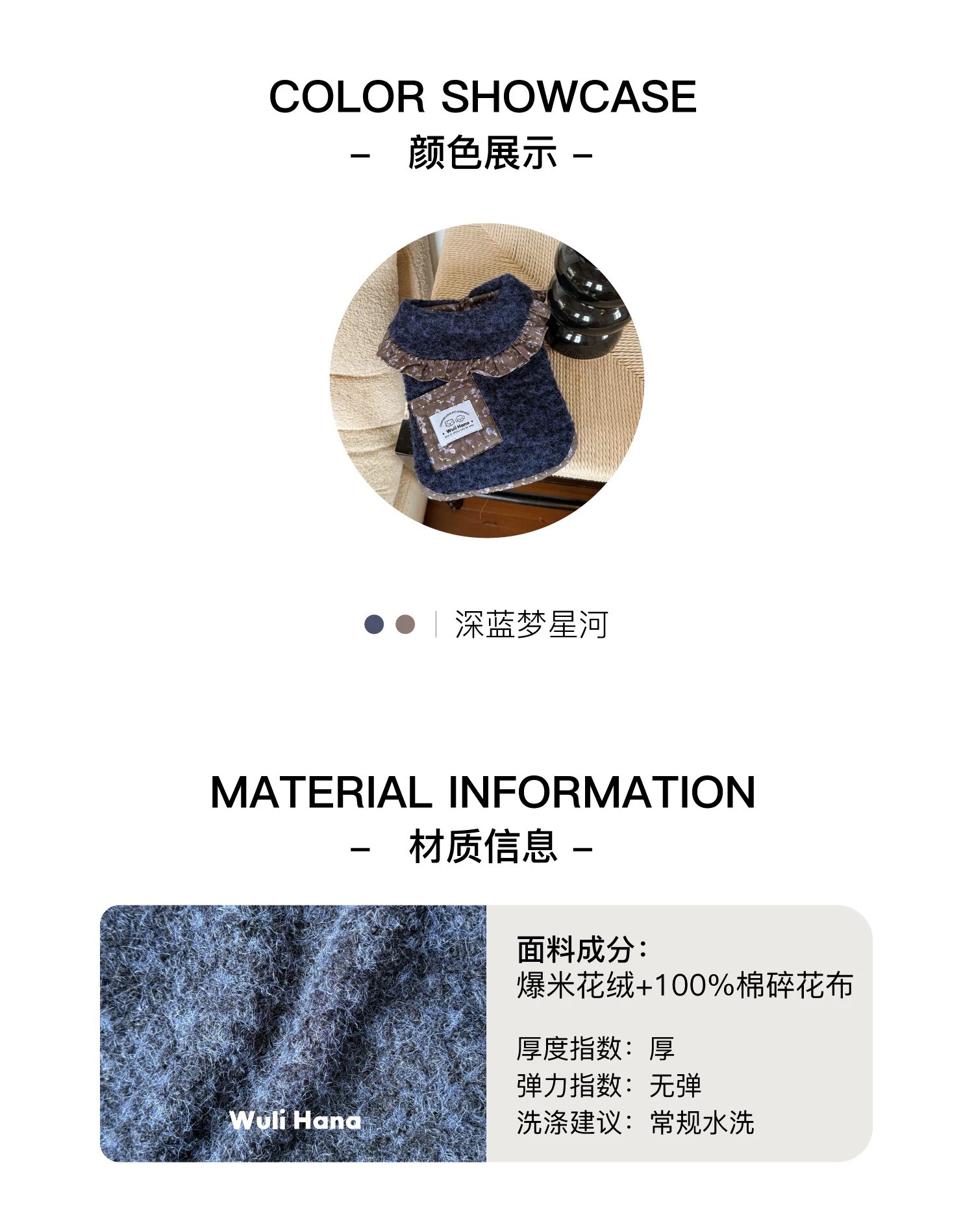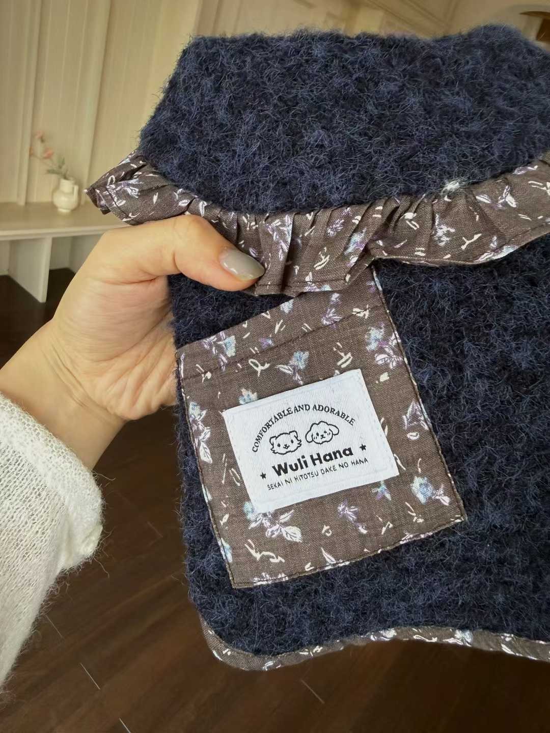 Wuli Hana 窝里横 深蓝梦星河 碎花荷叶边爆米花绒冬季保暖外套