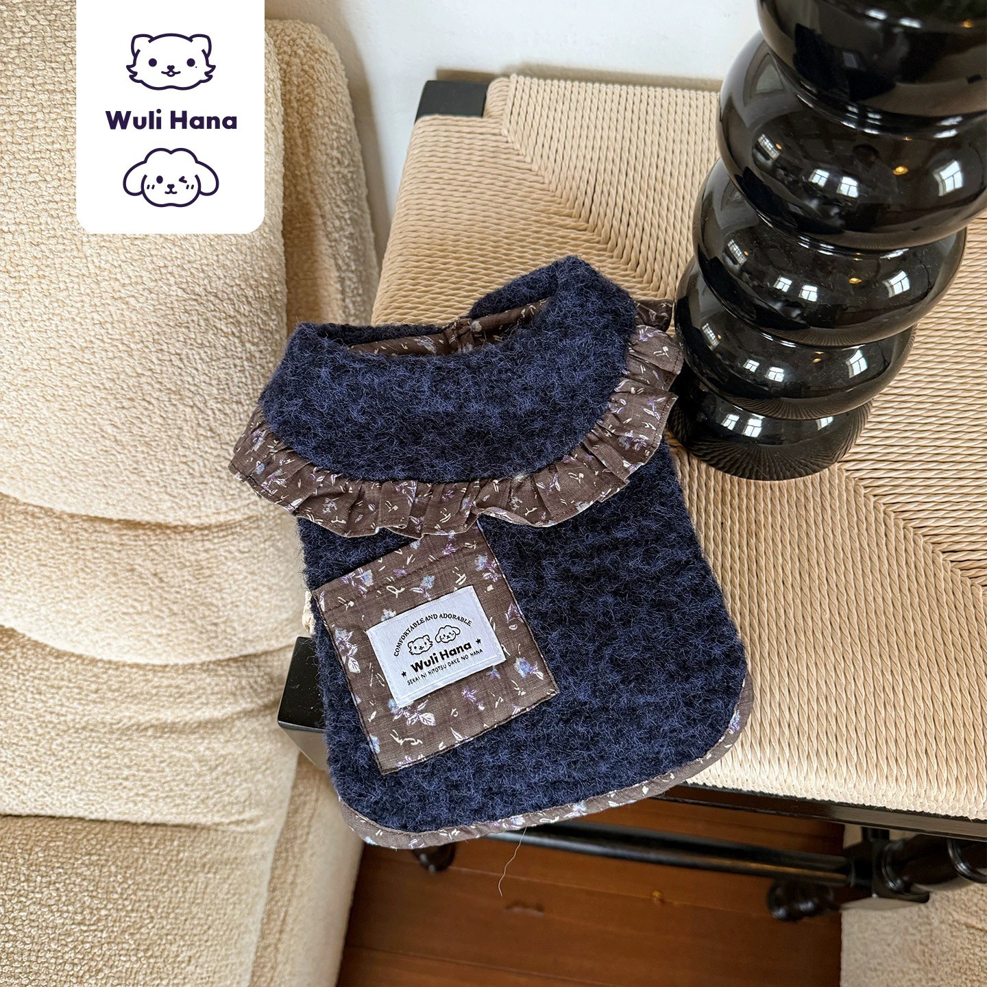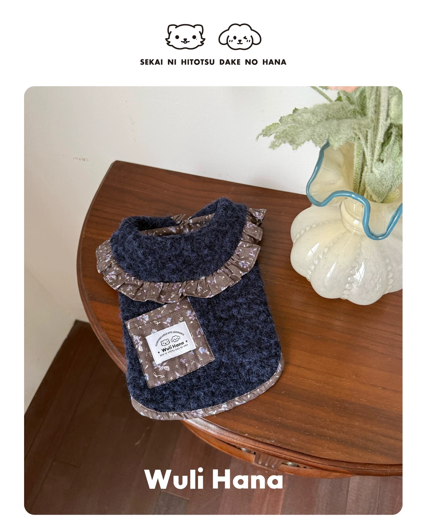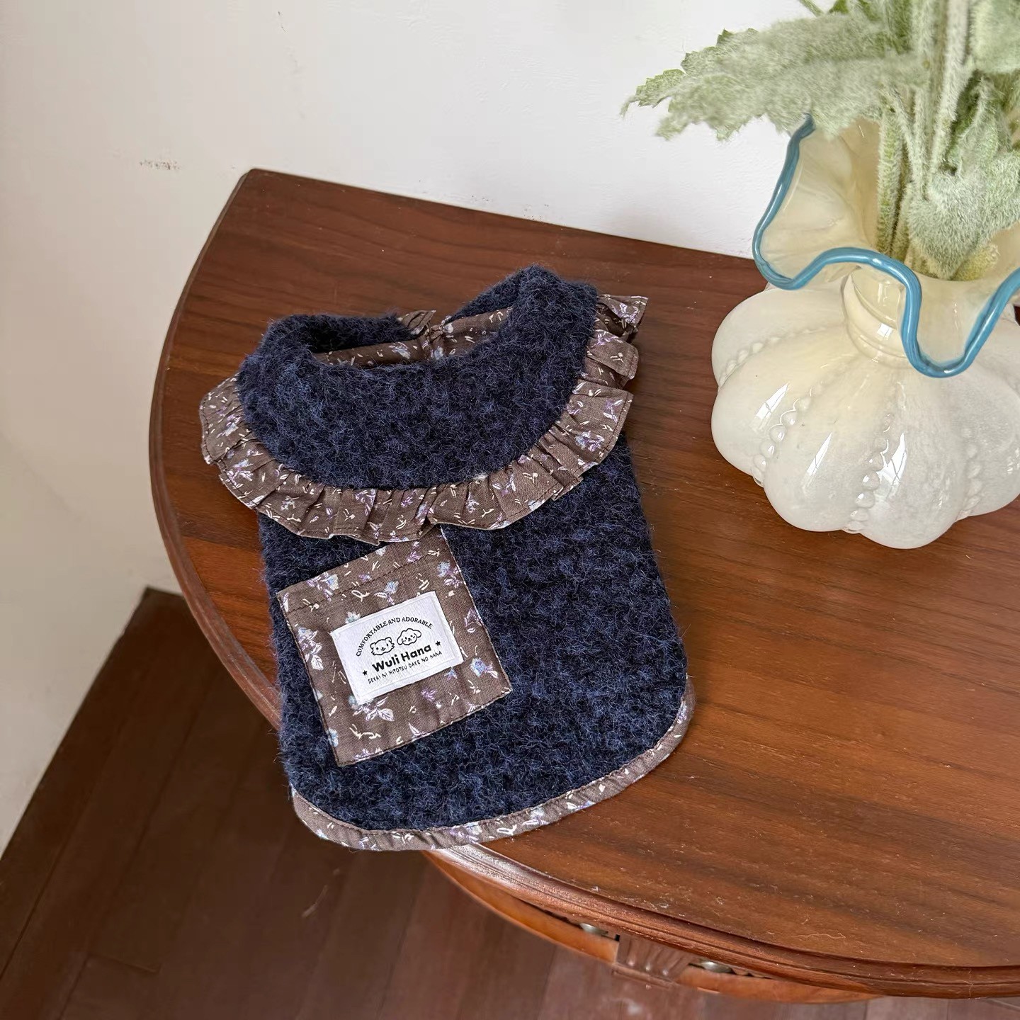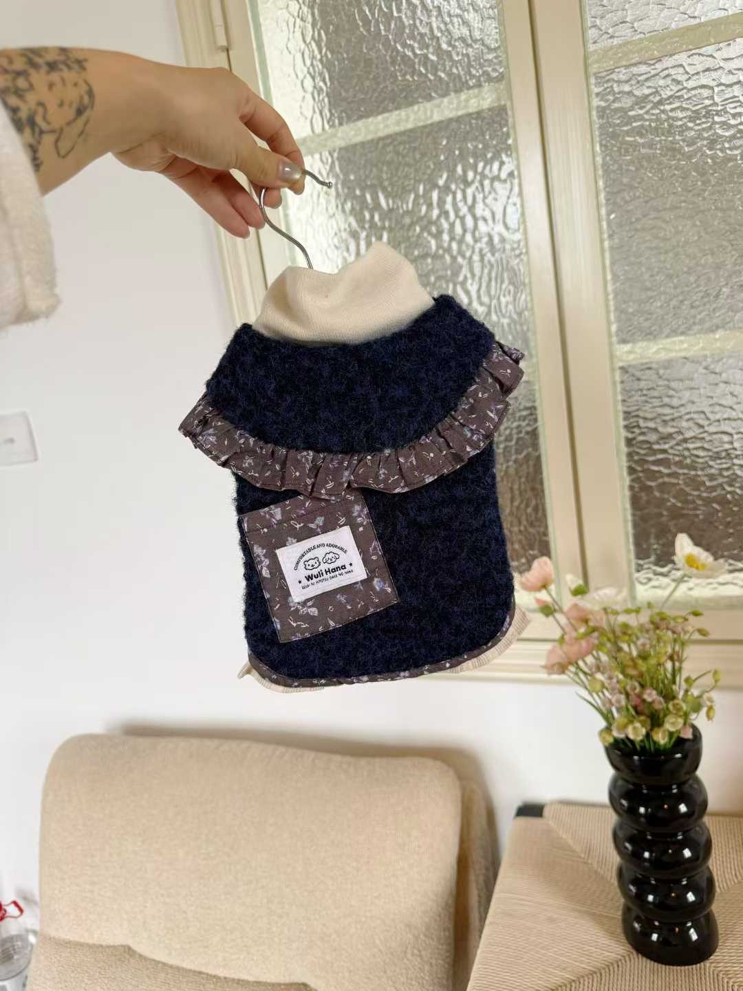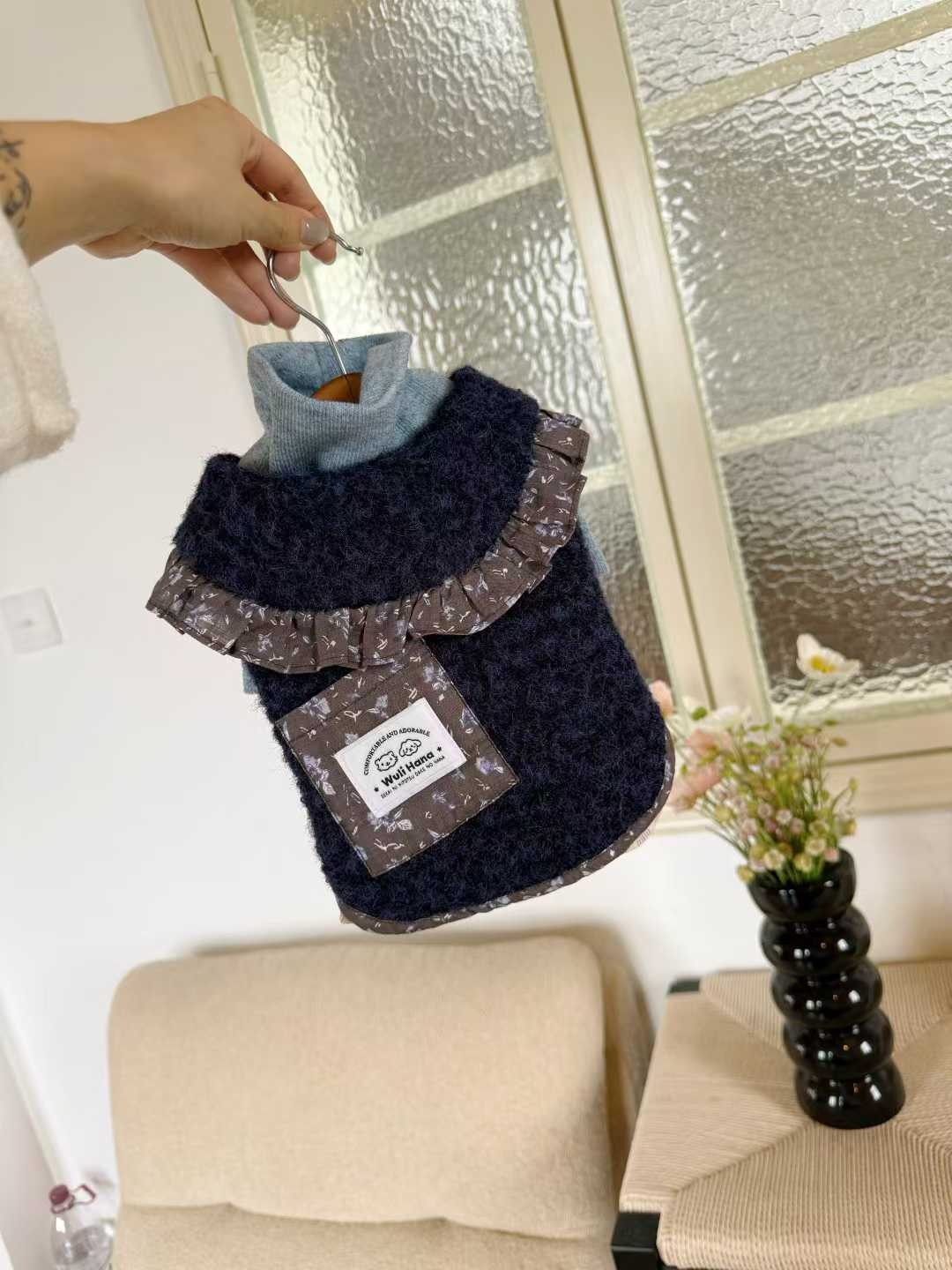Wuli Hana 窝里横 深蓝梦星河 碎花荷叶边爆米花绒冬季保暖外套