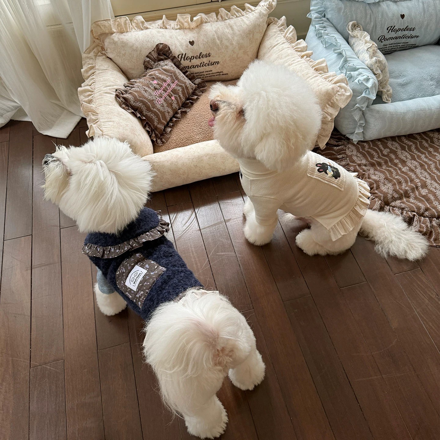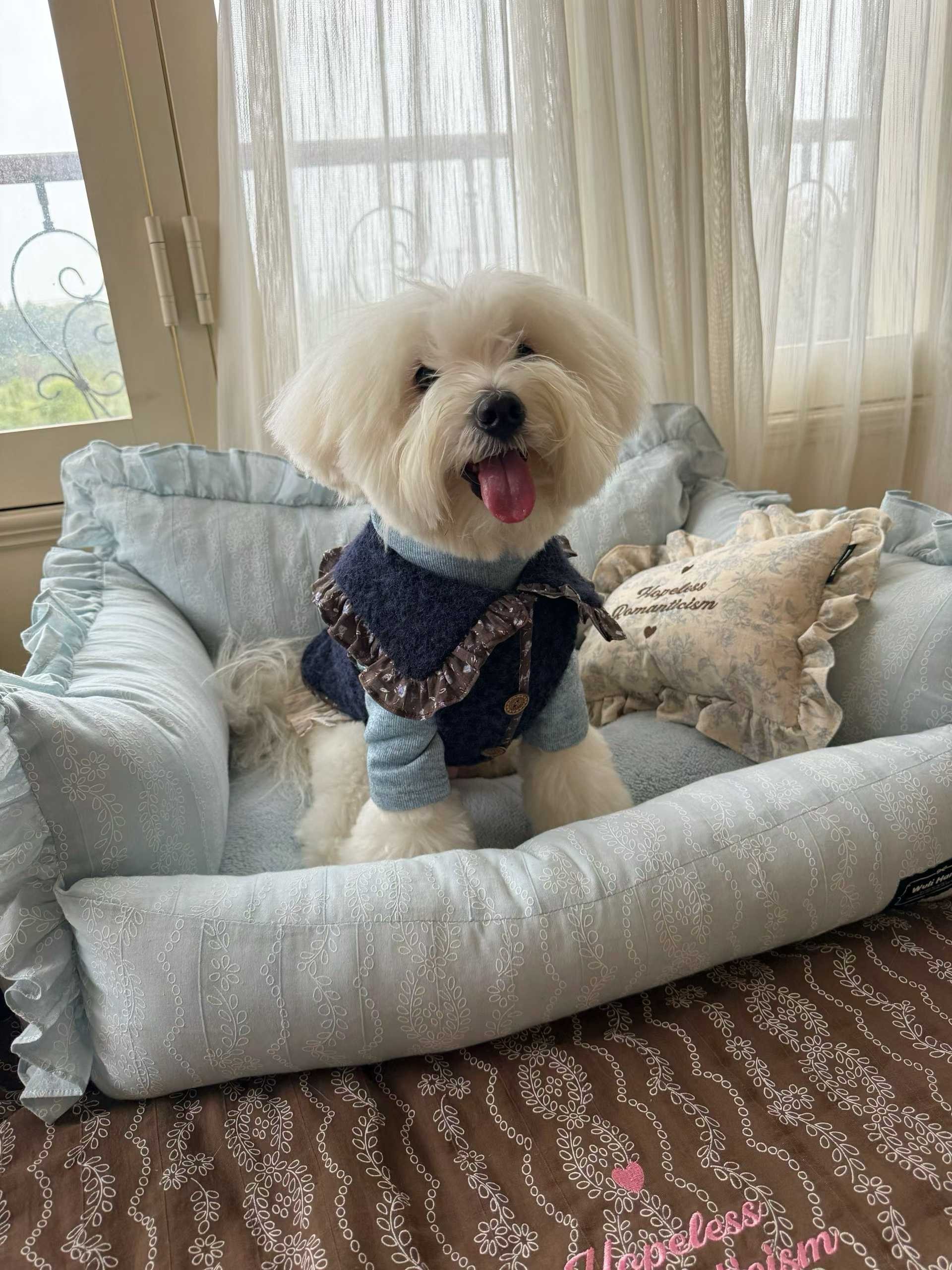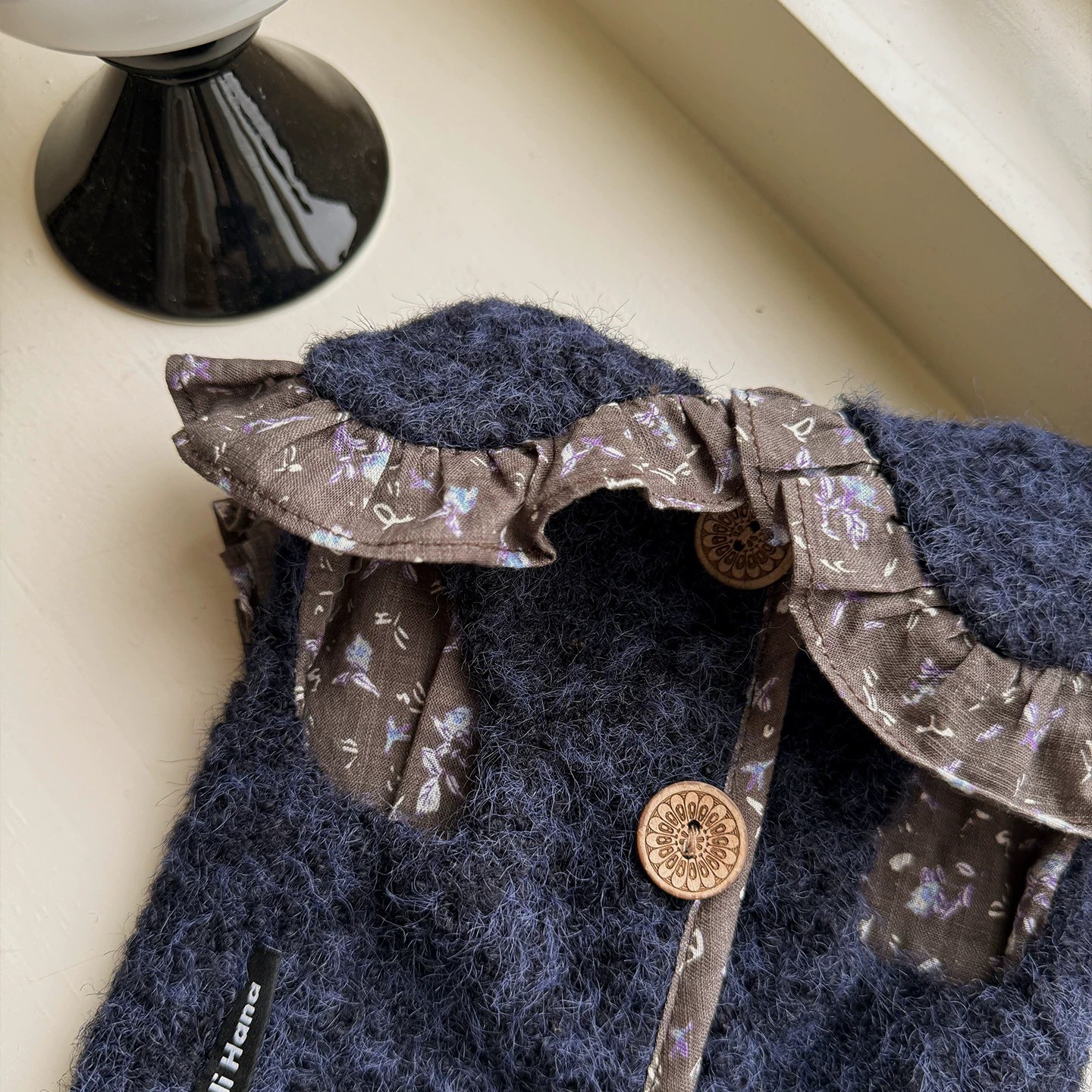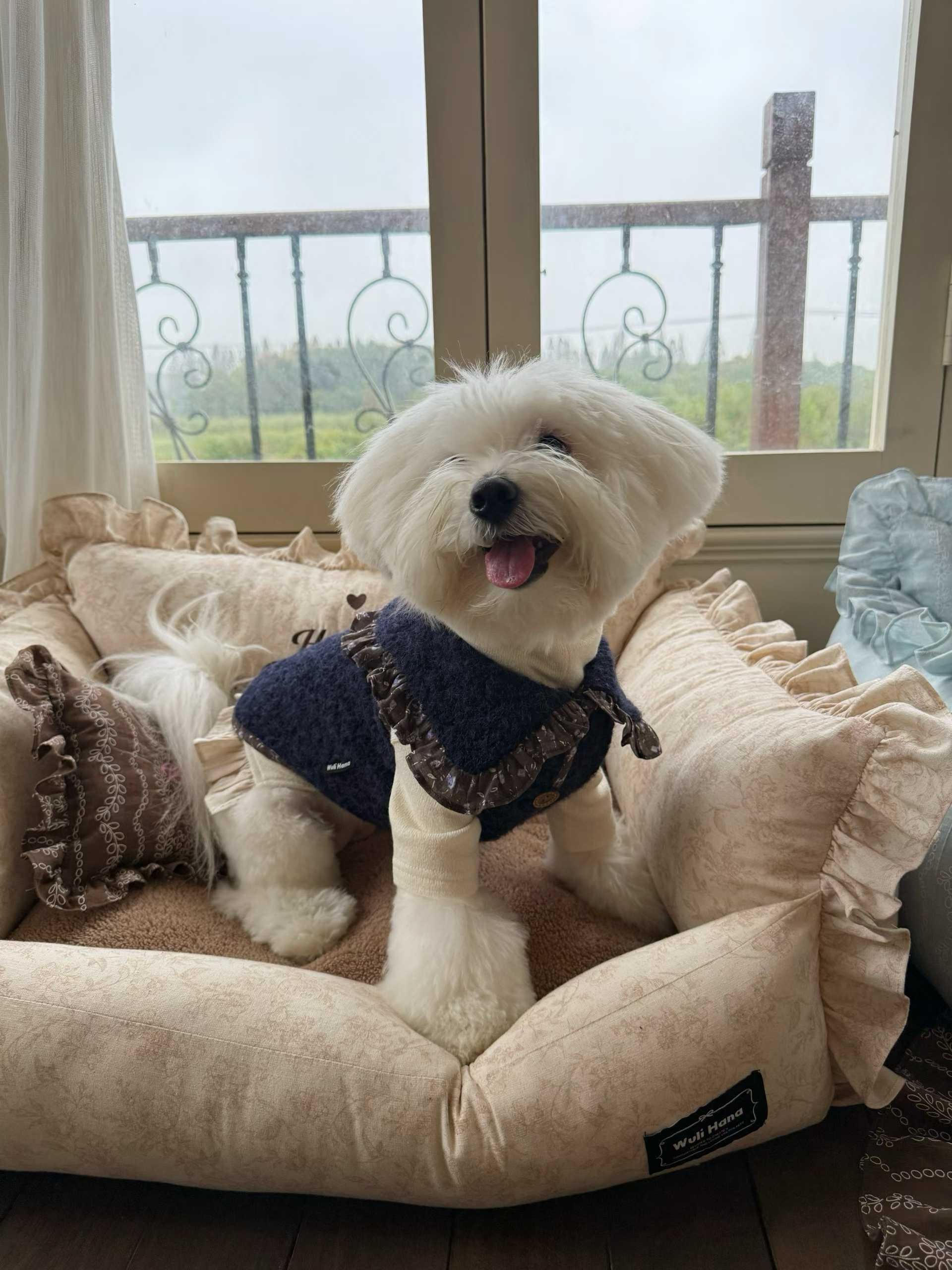 Wuli Hana 窝里横 深蓝梦星河 碎花荷叶边爆米花绒冬季保暖外套
